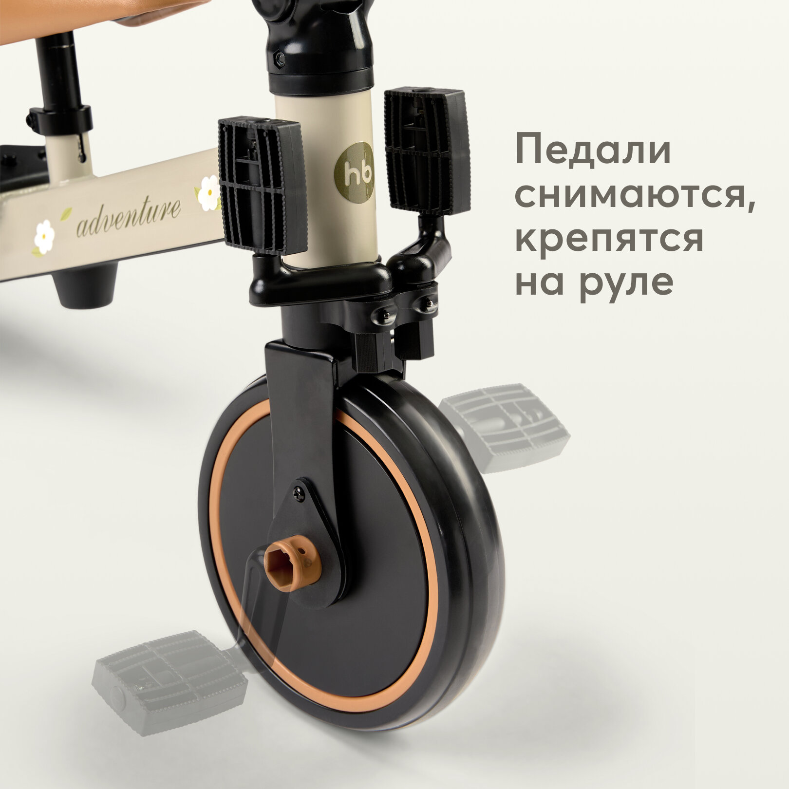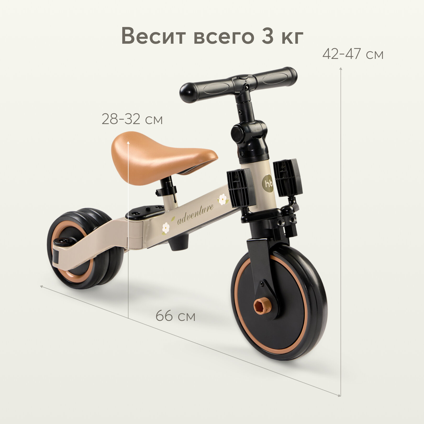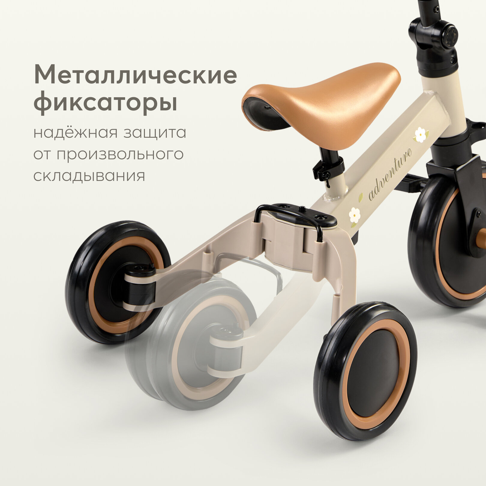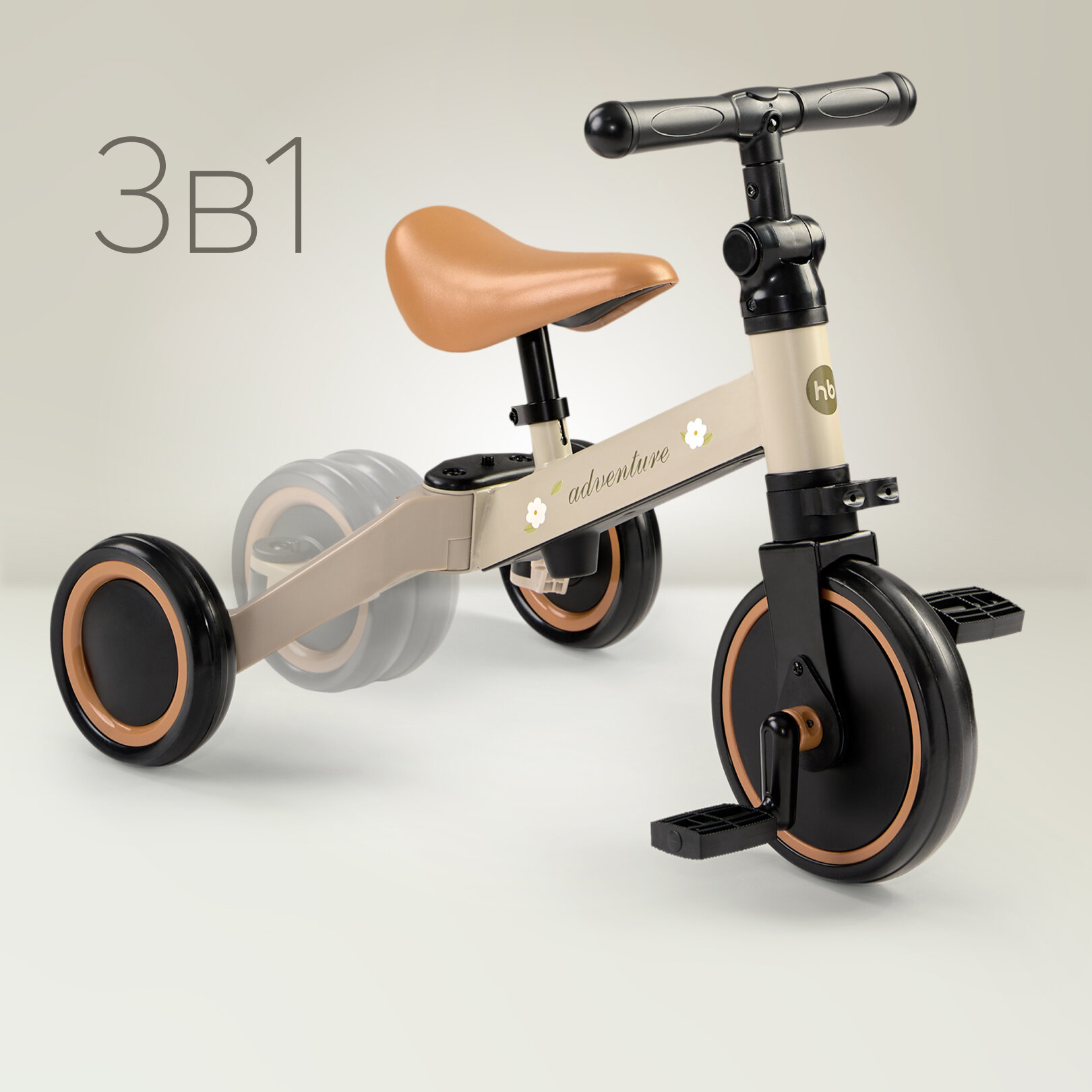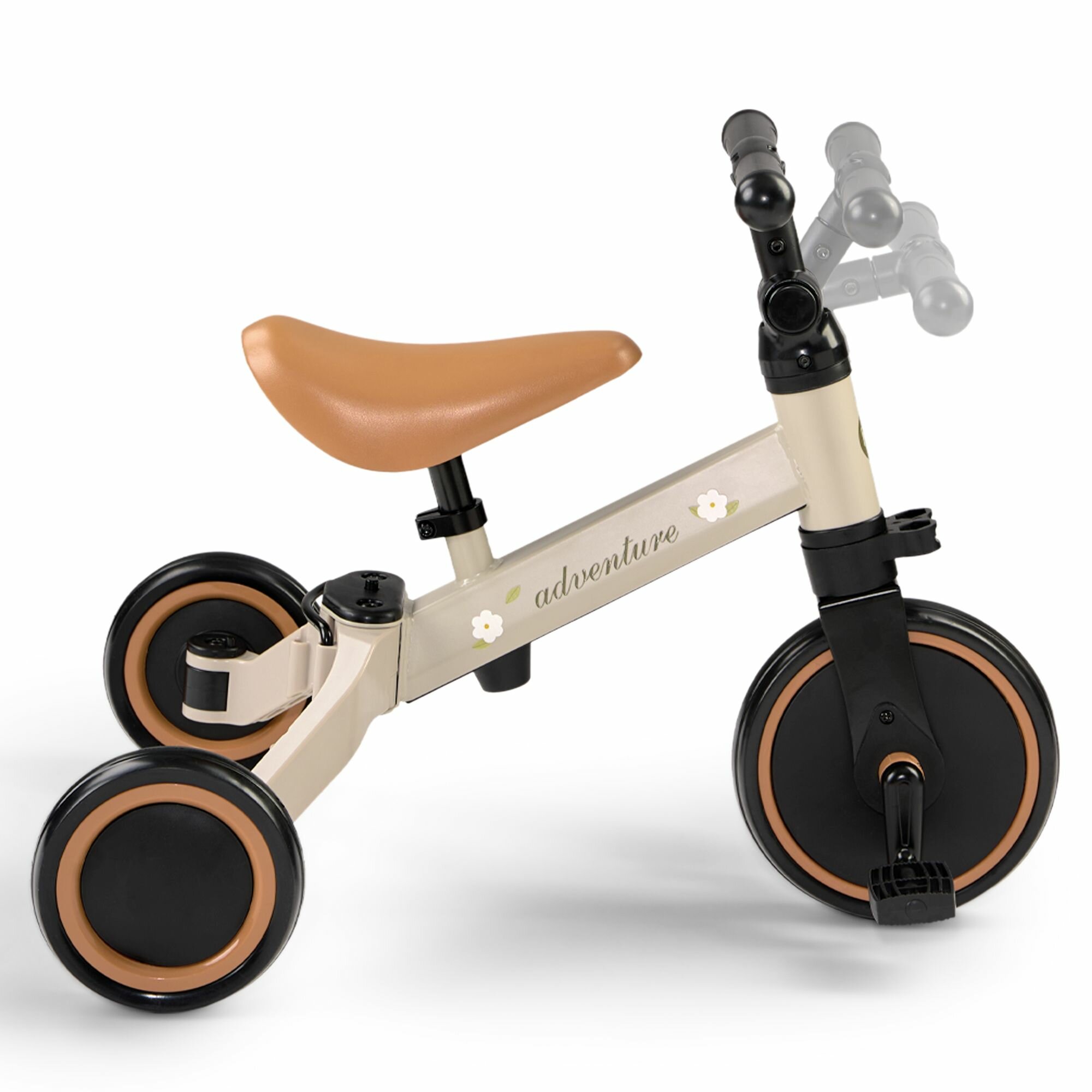 50026, Беговел детский от 1 ADVENTURE, трансформер двухколёсный-трехколесный велосипед, 3в1, серо-зеленый с цветами интересное:
