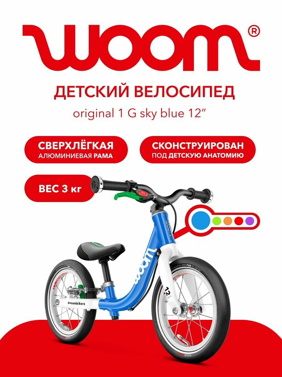 Беговел Woom Original 1, 12 дюймов, рост 82-100см, Sky Blue интересное: