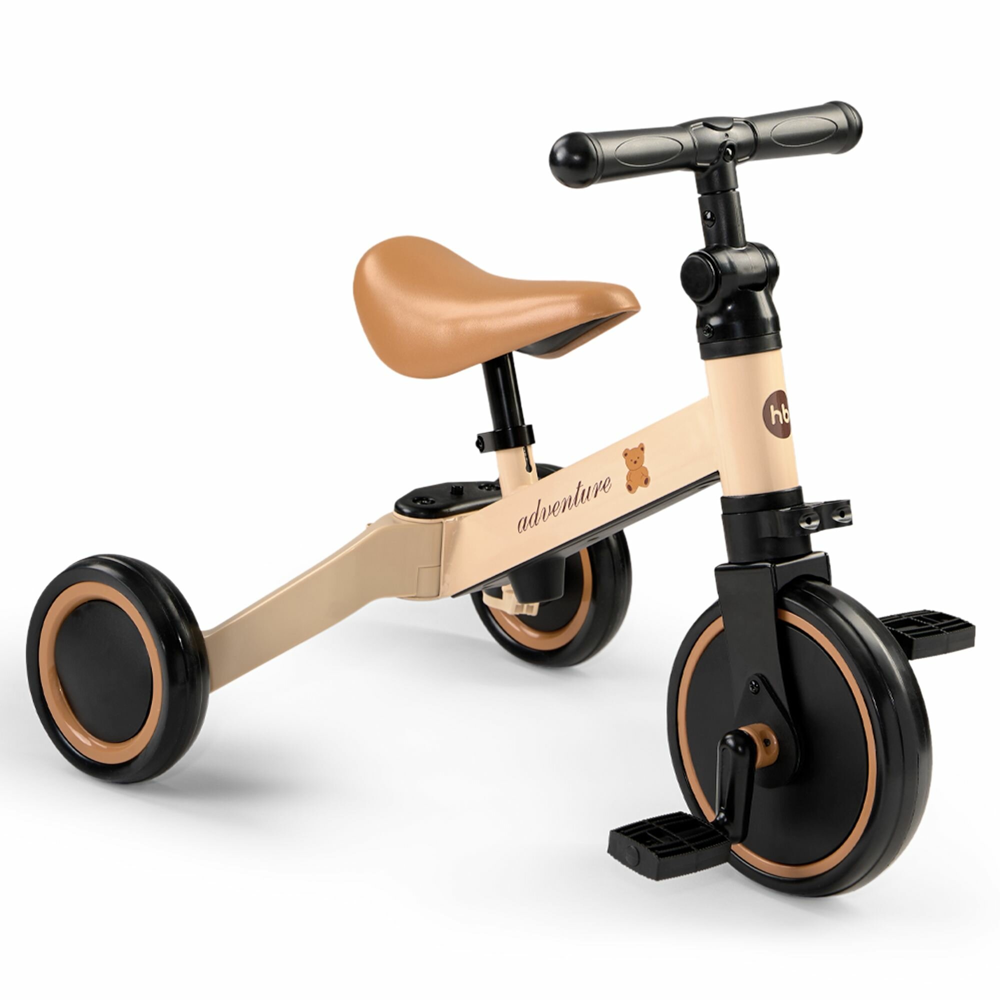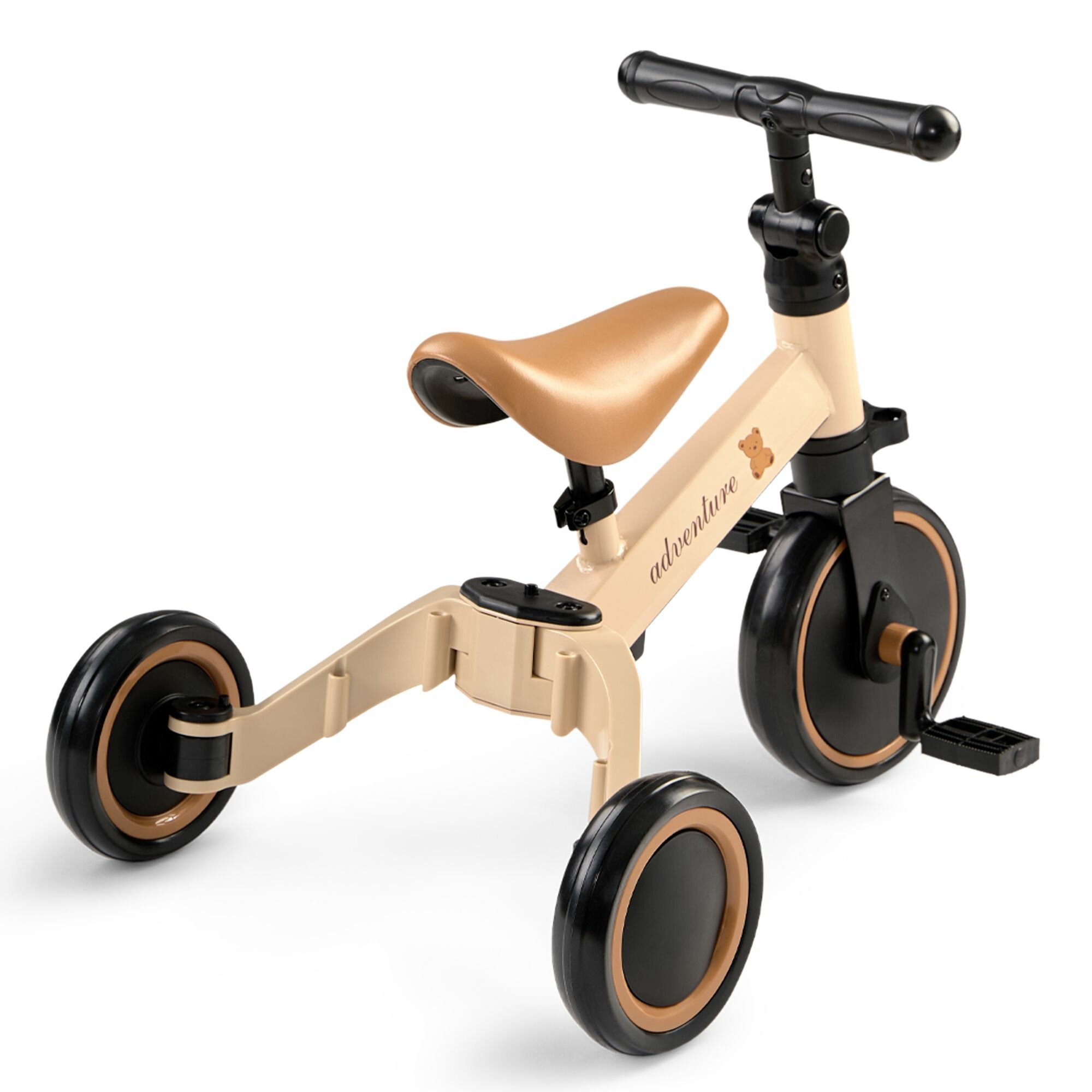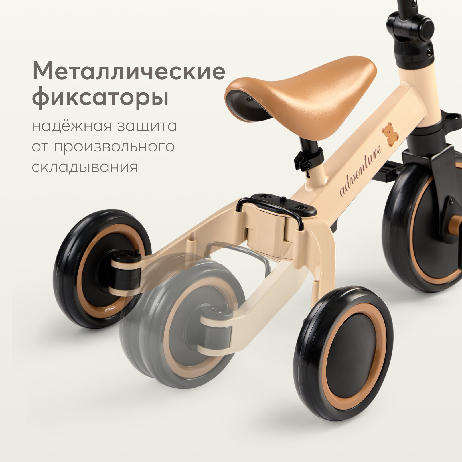 Купить 50026, Беговел детский от 1 ADVENTURE, трансформер двухколёсный-трехколесный велосипед, 3в1, бежевый с мишками