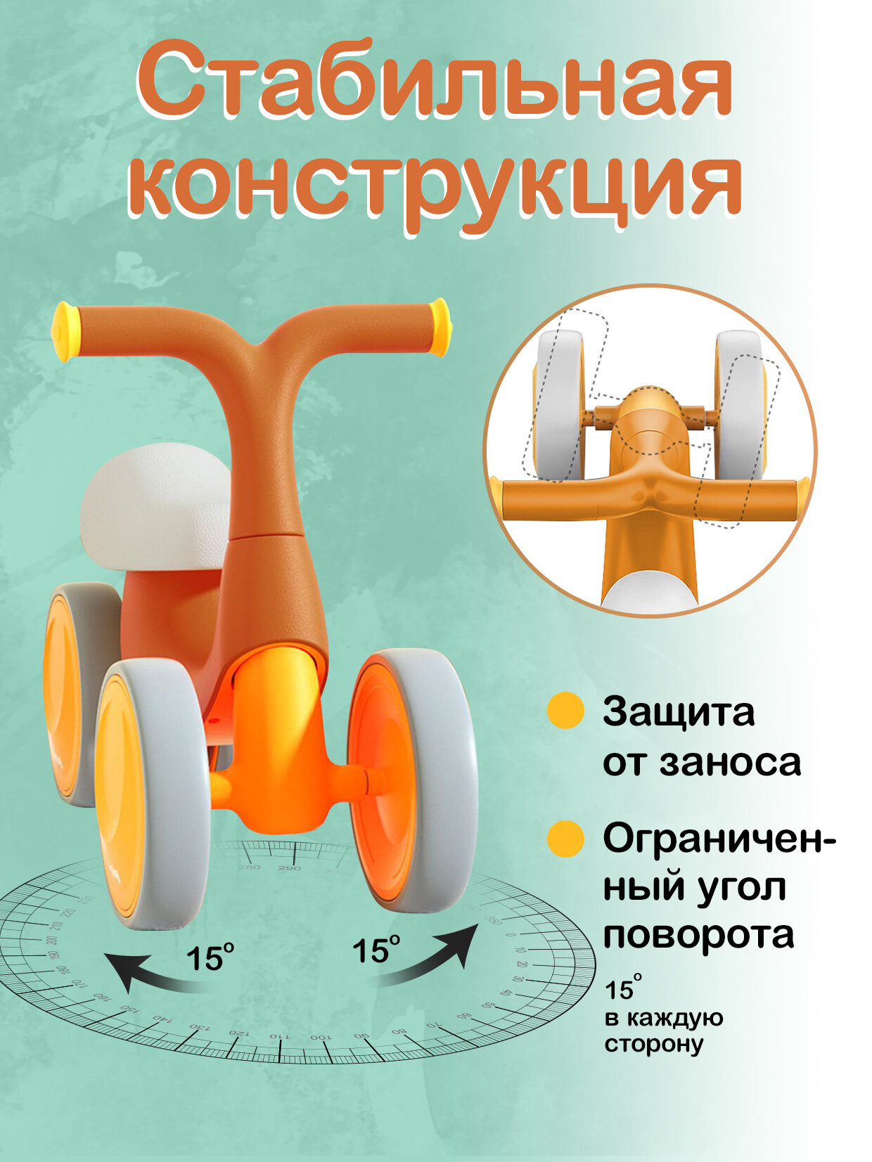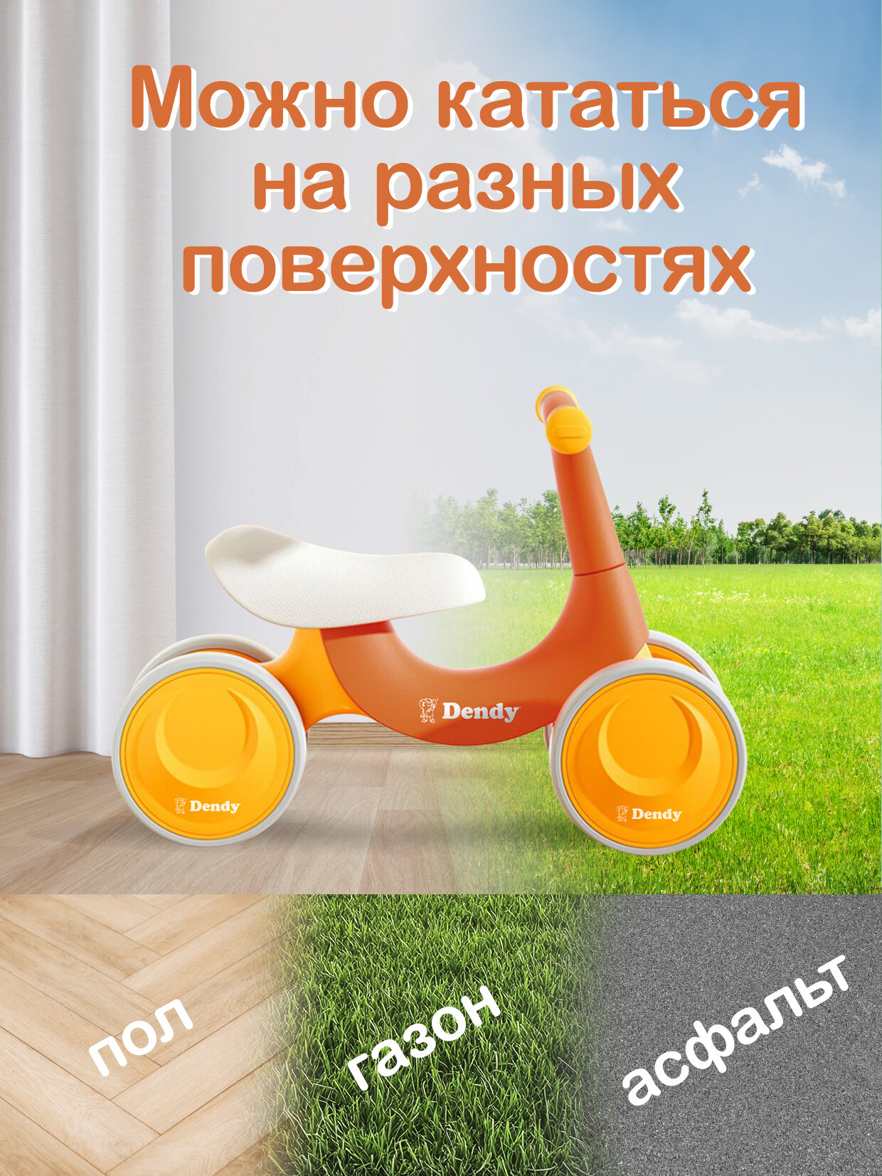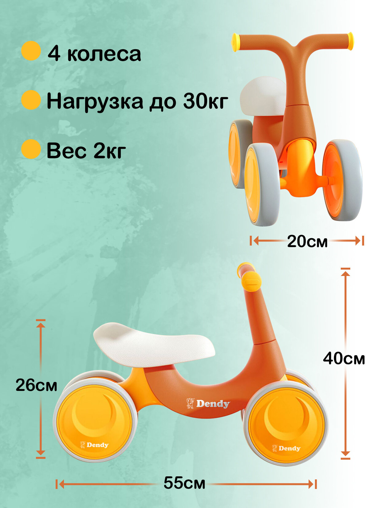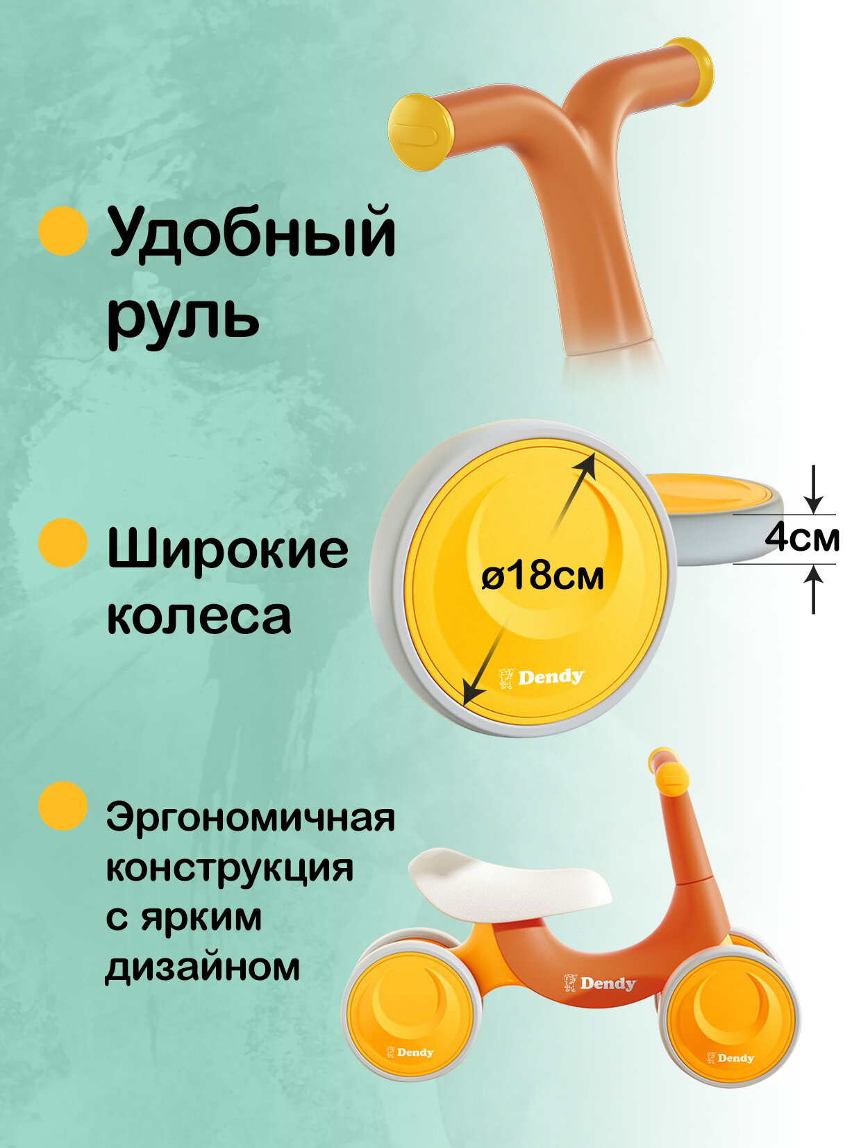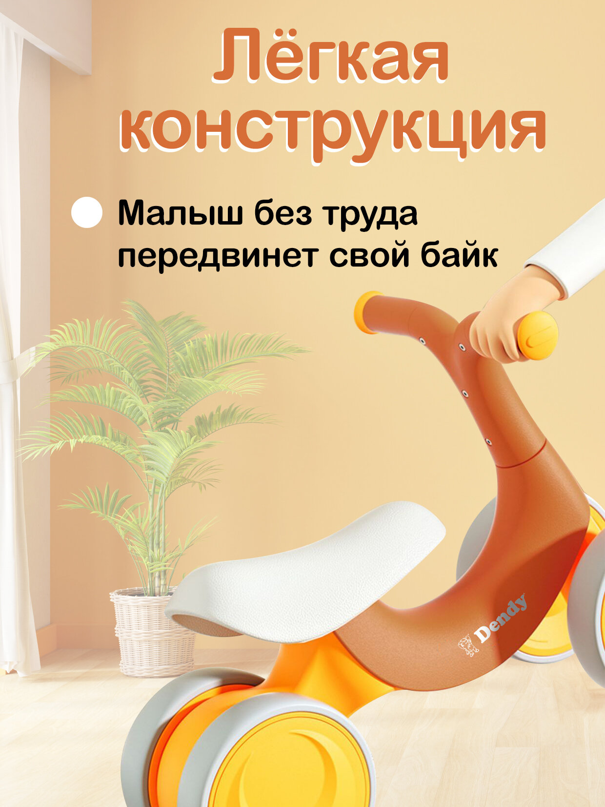 Беговел Dendy от 1 года / велосипед детский 4 колеса оранжевый интересное: