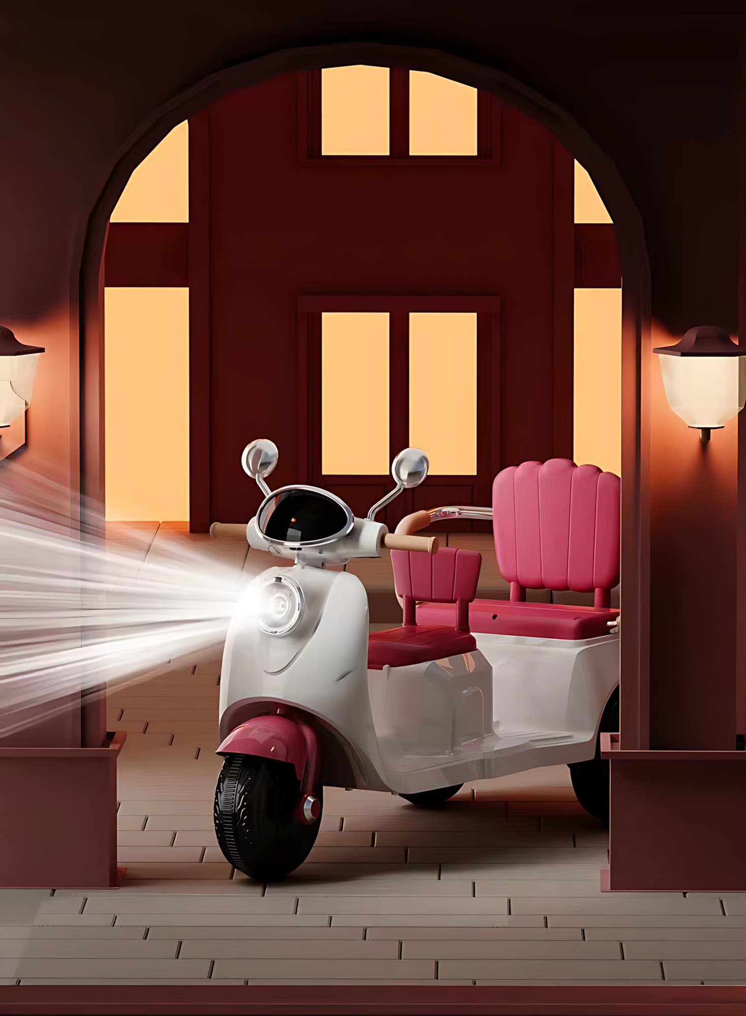 Детский двухместный мотоцикл, электромопед, с Bluetooth, трехколесный, 6 В, 7 Ач, двойной привод, ретро-бежевый