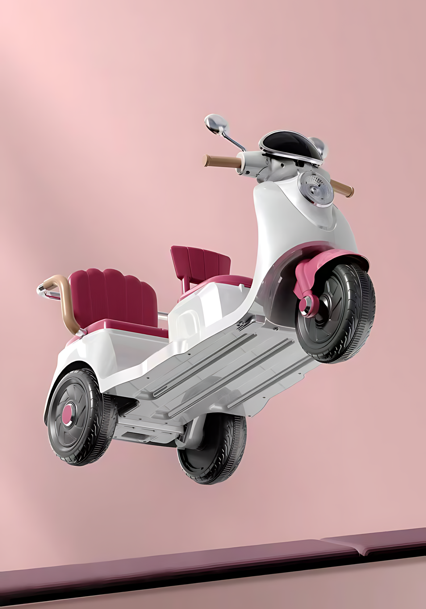 Детский двухместный мотоцикл, электромопед, Bluetooth, пульт ДУ, трехколесный, 6 В, 7 Ач, двойной привод, бело-розовый