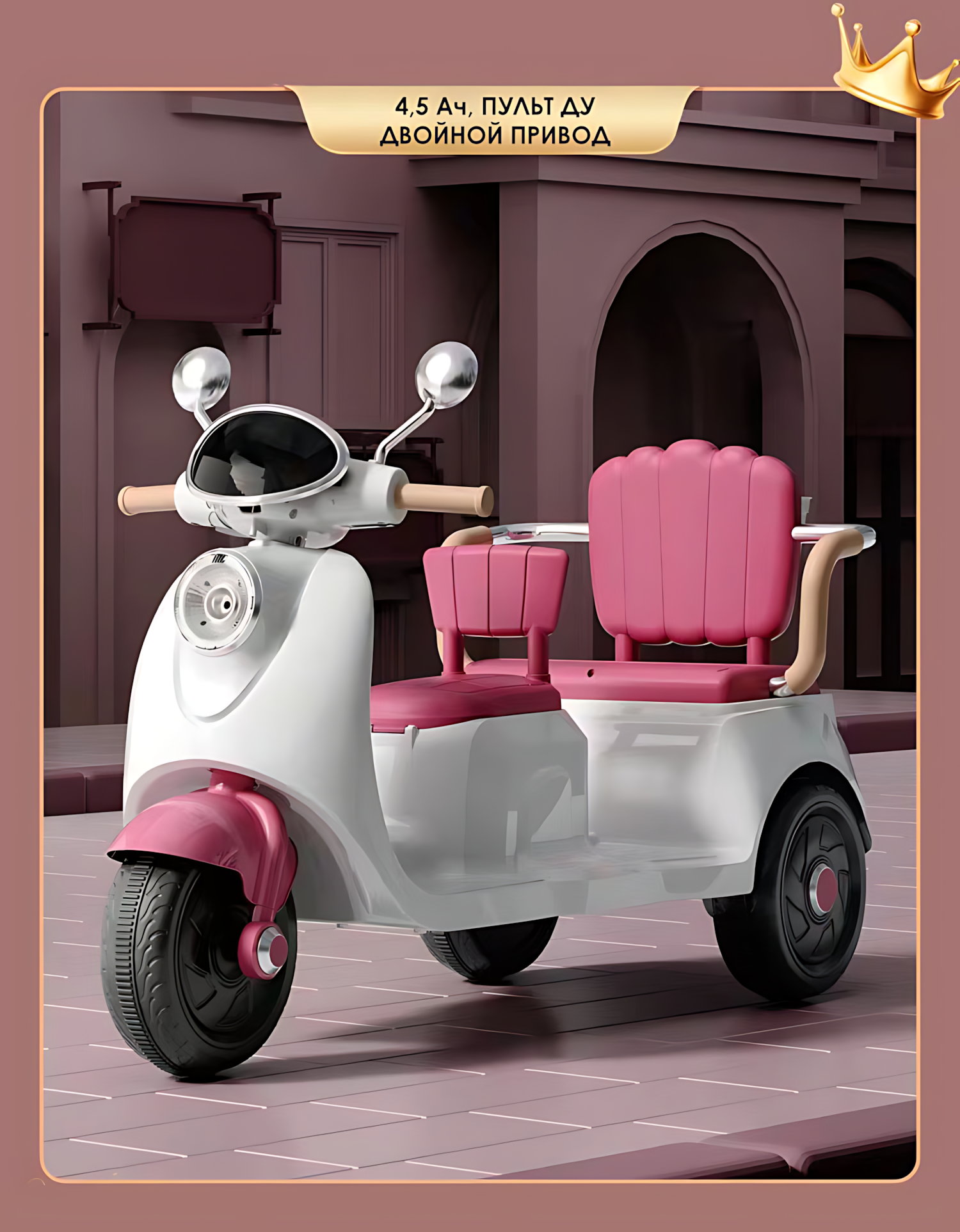 Детский двухместный мотоцикл, электромопед, с Bluetooth, трехколесный, 6 В, 4,5 Ач, одинарный привод, розовый