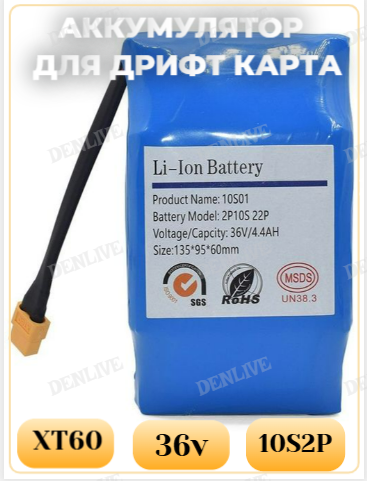Аккумулятор 36V 4.4Ah, для детского квадроцикла, электроснегоката и дрифт-карта интересное:
