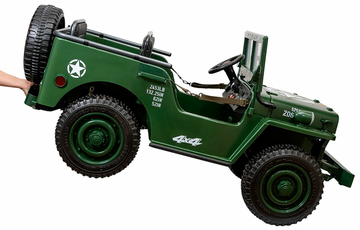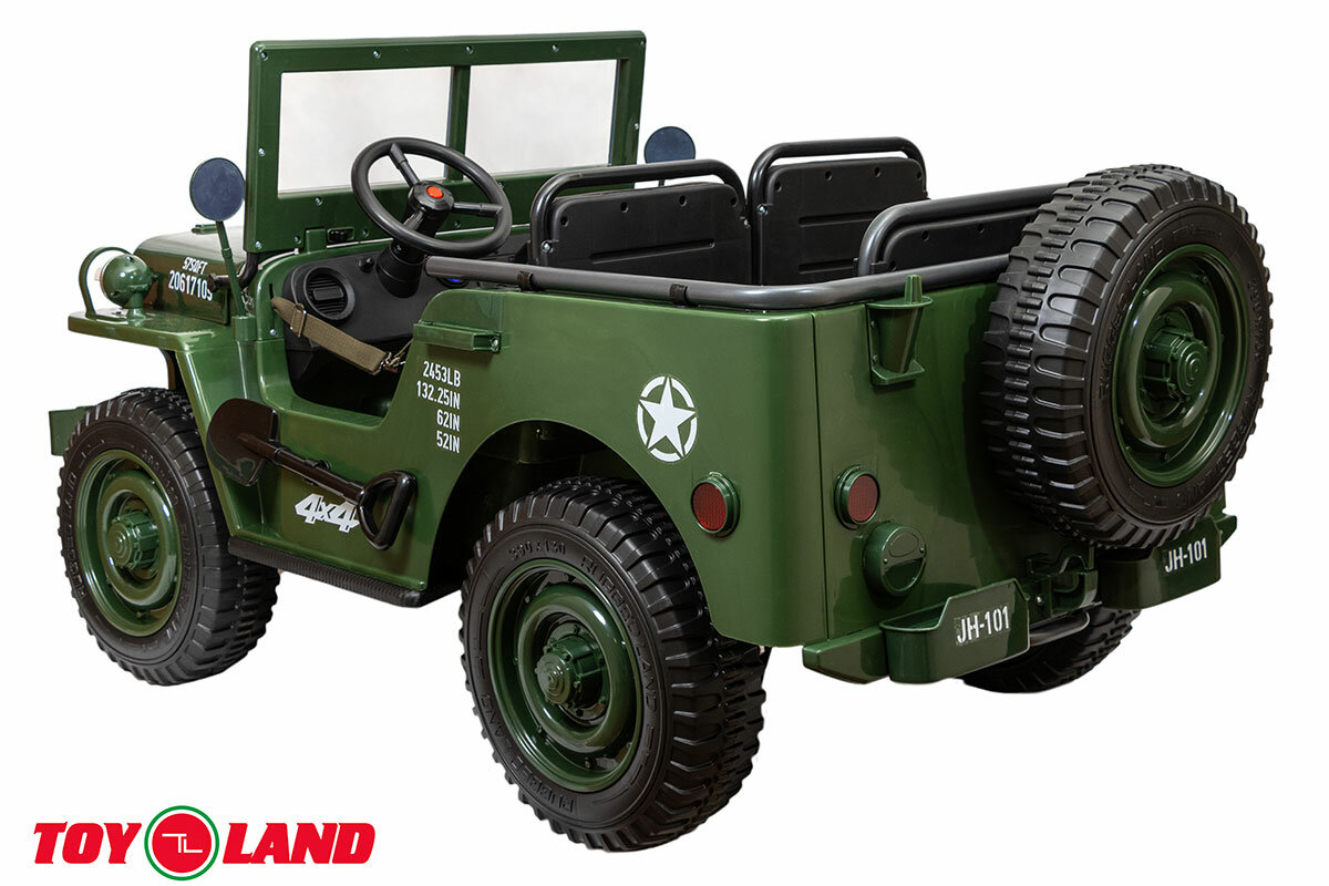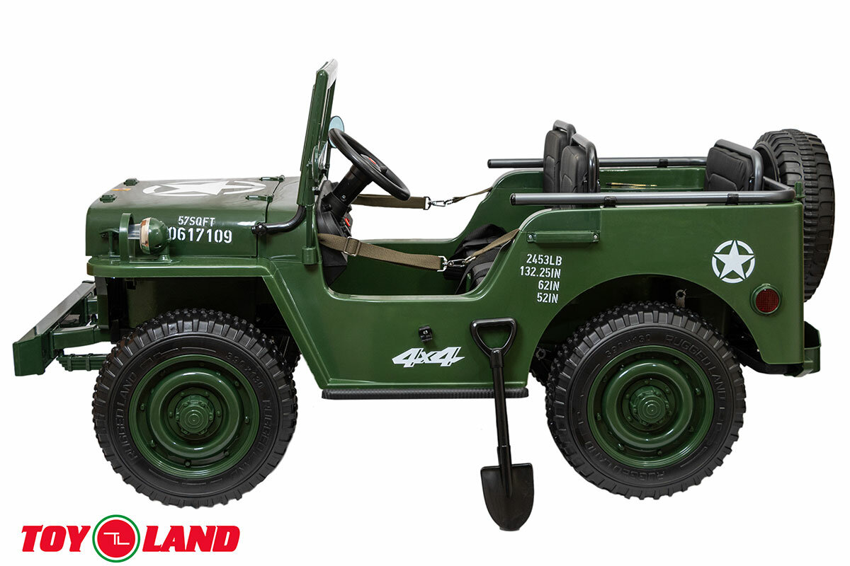 Детский электромобиль джип ToyLand Jeep Willys 4x4 4137 армия зелёный интересное: