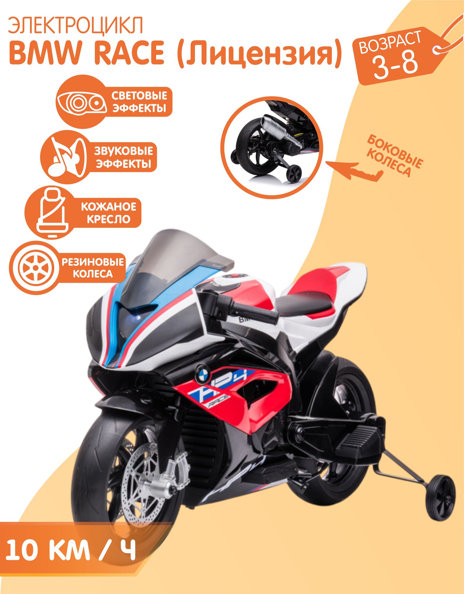 Купить Электромотоцикл BMW RACE (Красный) + лицензия + подножка + вспомогательный колёса