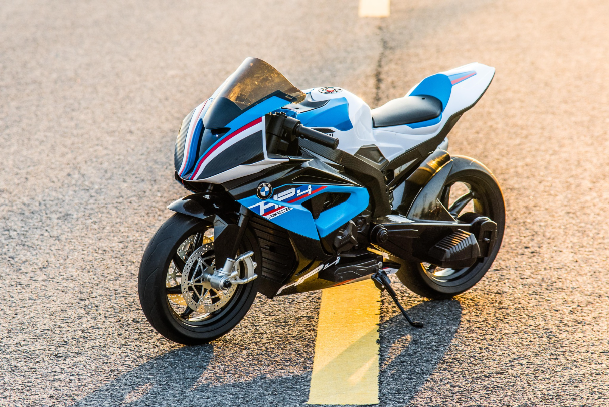 Купить Электромотоцикл BMW RACE (Синий) + лицензия + подножка + вспомогательный колёса