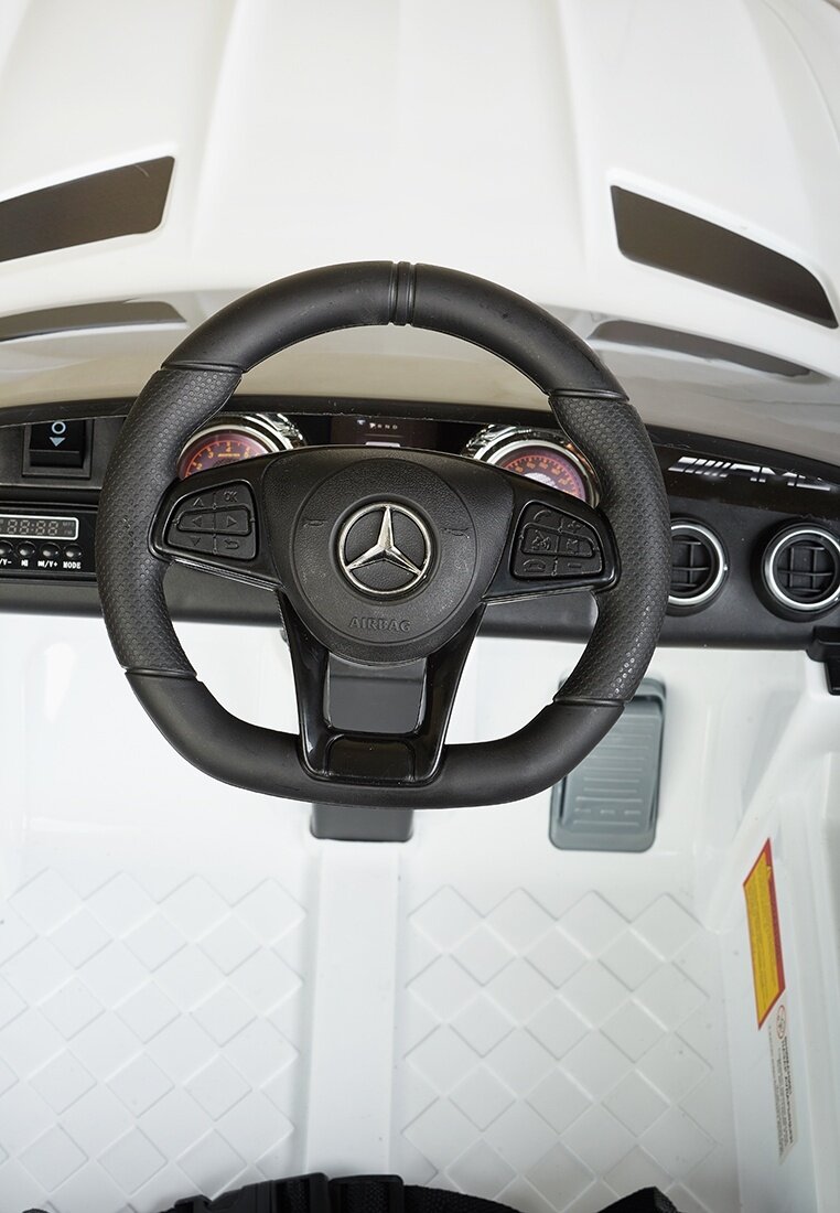 Детский электромобиль на аккумуляторе и с пультом управления, Mercedes-AMG GT R белый интересное: