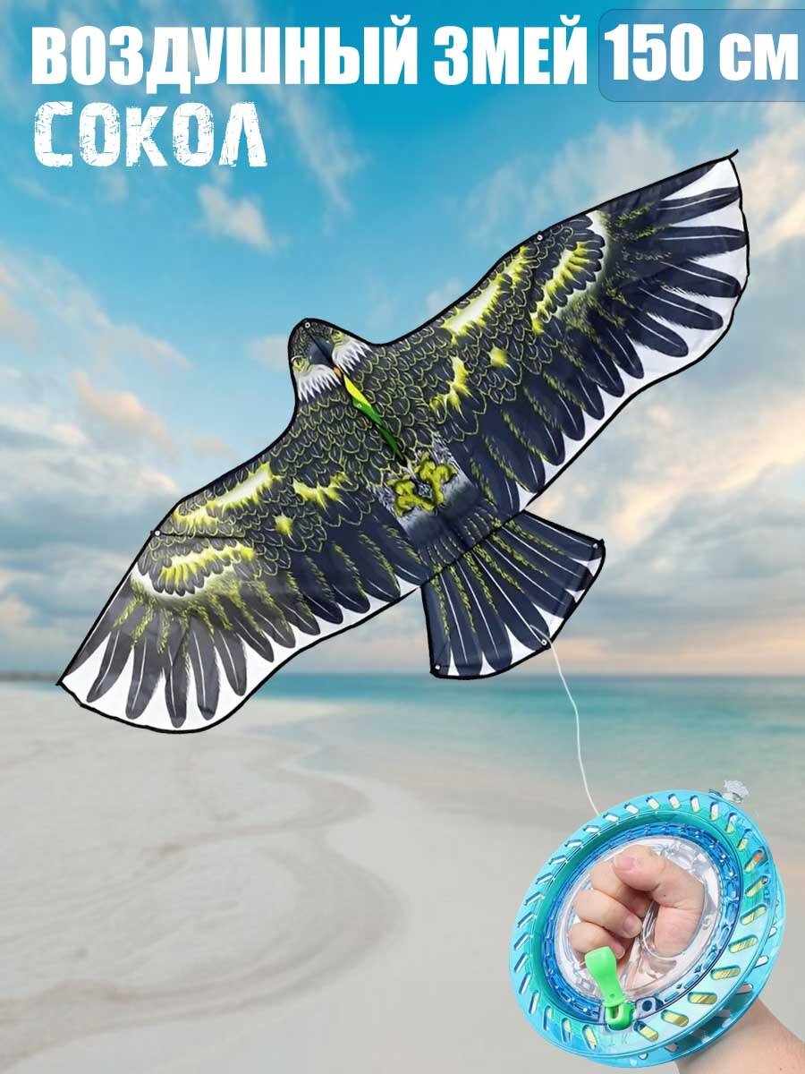 (синий) Большой воздушный змей Сокол 150 см с катушкой интересное: