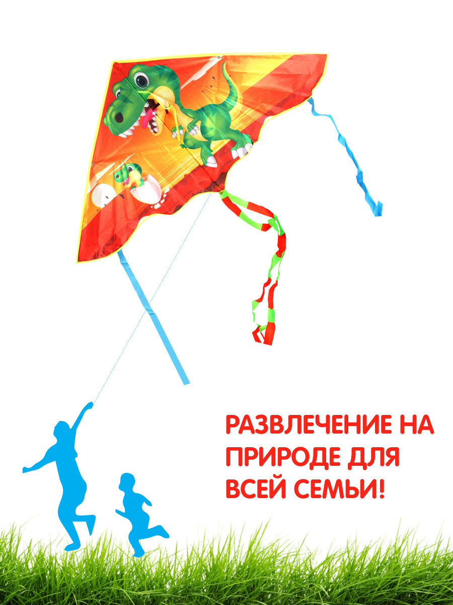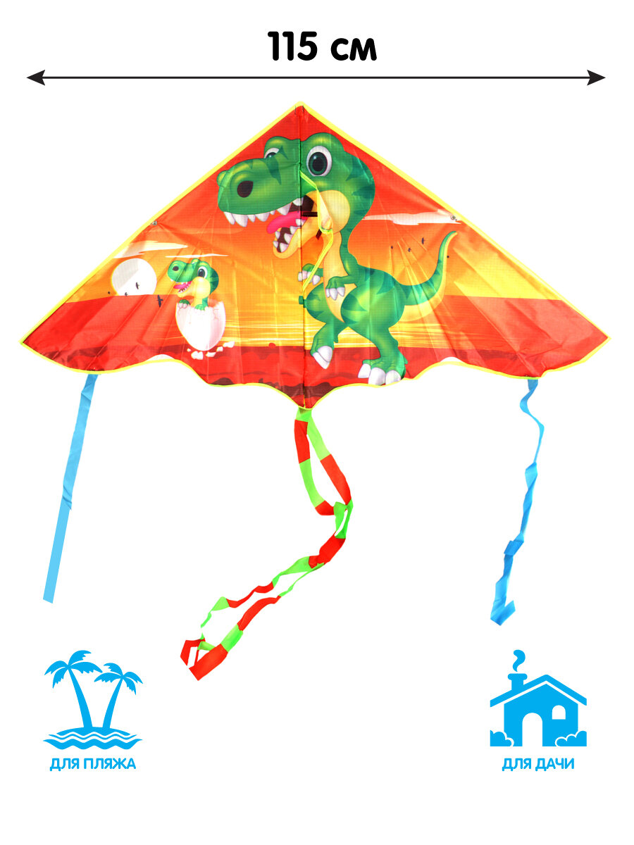 Купить Большой воздушный змей для детей "Динозаврик", 115 см, Veld Co / На леске с катушкой / Детская управляемая игрушка для мальчиков и девочек