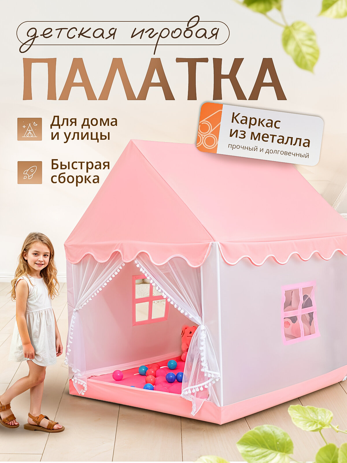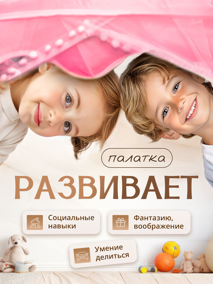 Палатка детская игровая Sharktoys с металлическим каркасом, розовая интересное: