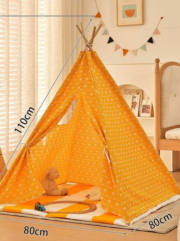 Купить Палатка-шатер детский, хлопок, с ковриком, оранжевая, 110x80x80 см, Желтый плед