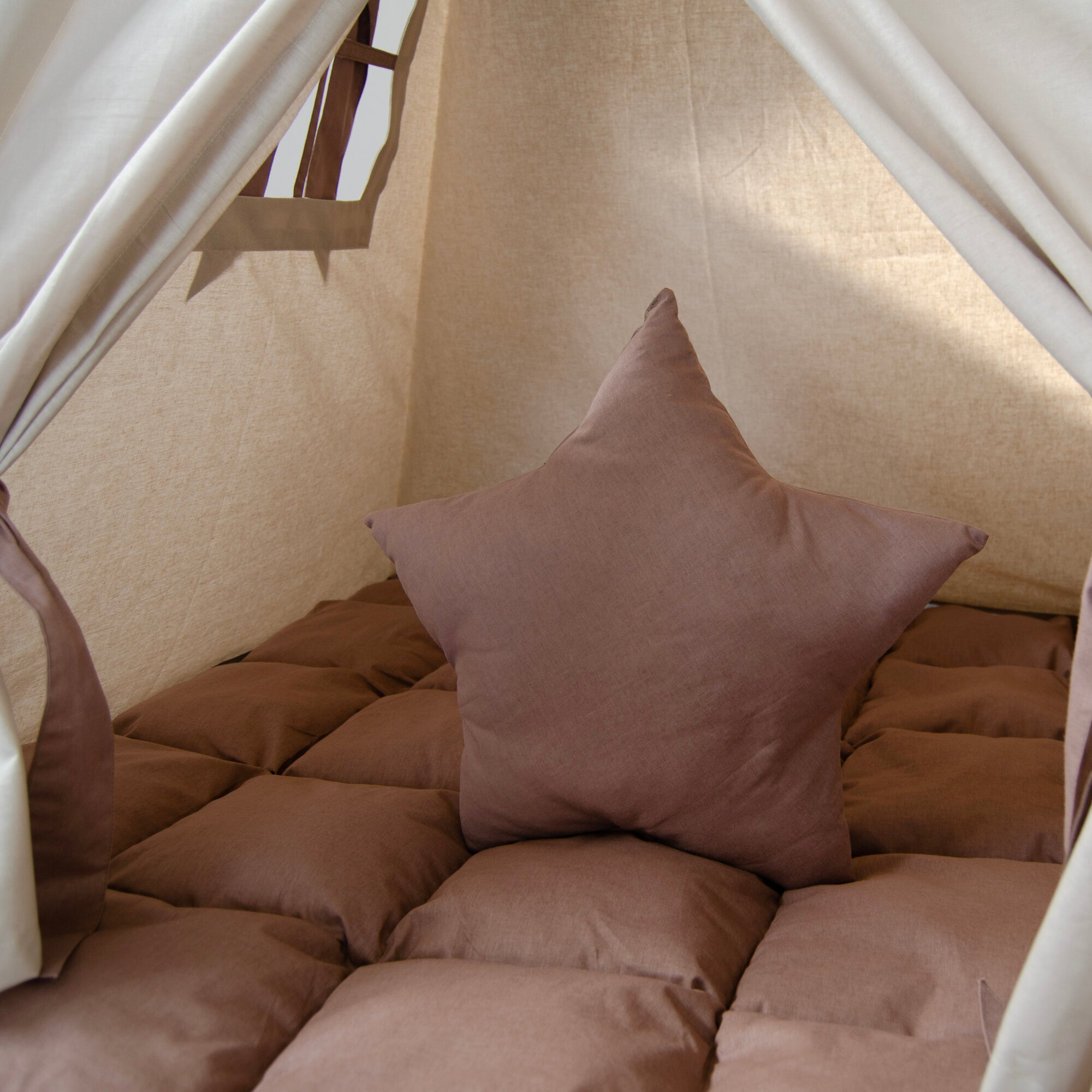 Купить Вигвам детский LiliKids Лён Какао, бежевый, с мягким ковриком