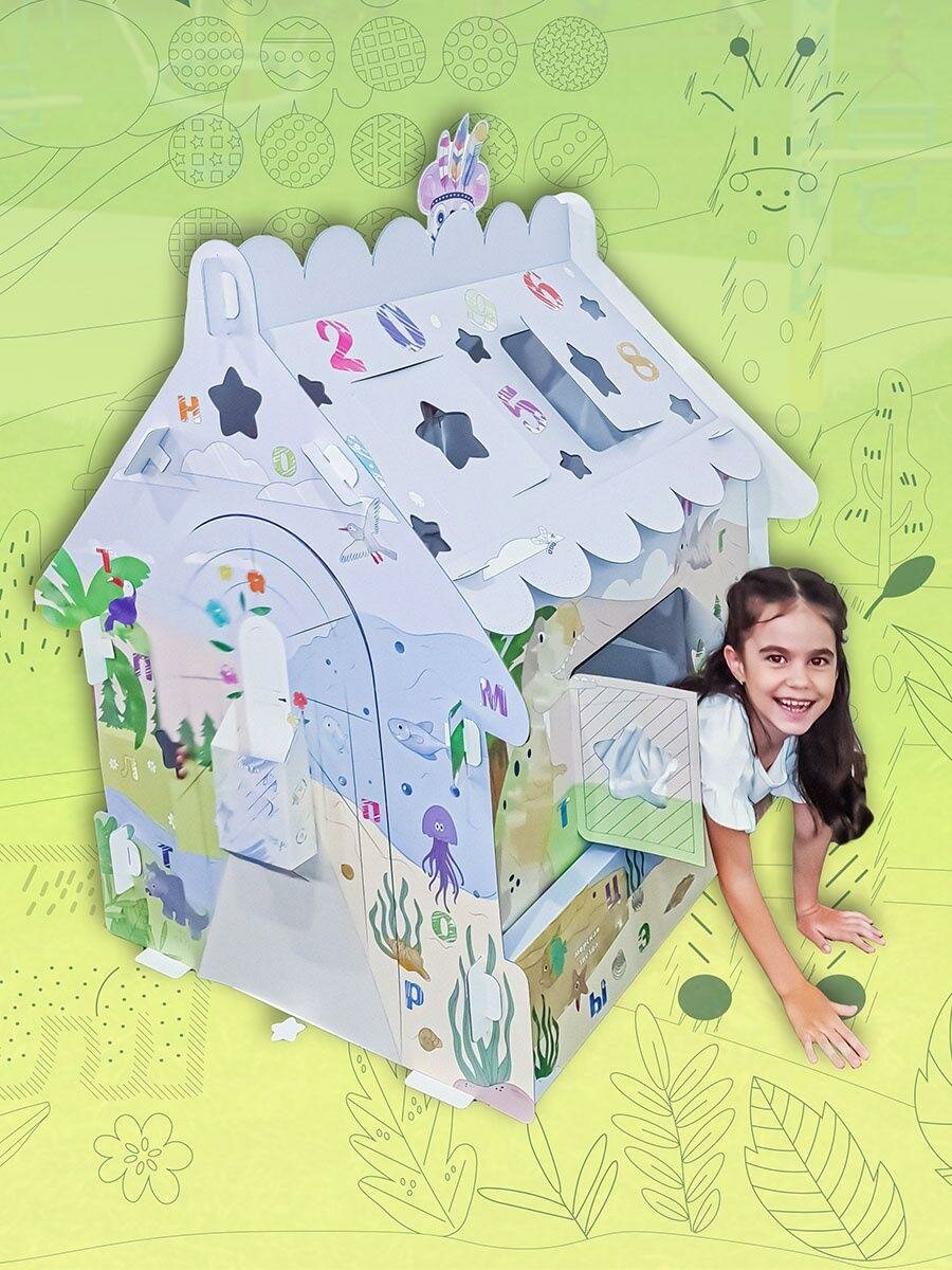 Купить Картонный домик раскраска с наклейками