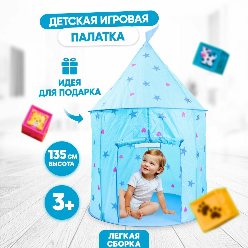 Детская игровая палатка, игрушечный домик для мальчика Solmax&Kids, голубой, размер 95х95х135 см интересное: