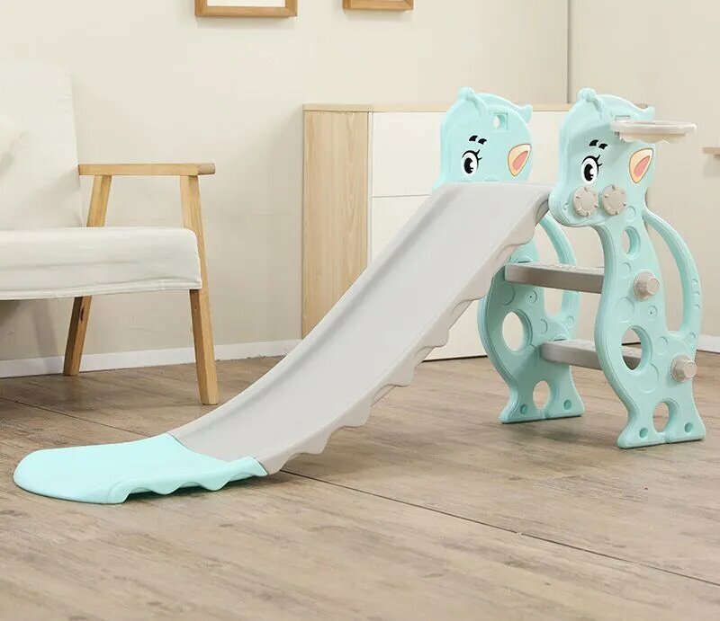 Купить Горка детская, пластик, баскетбольное кольцо, для дома и улицы, зеленая, 174х67х63 см