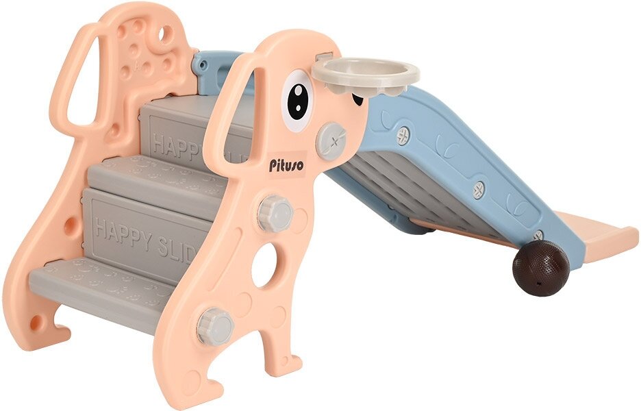 Купить Горка детская для дома и улицы Pituso Мопсик, игровой комплекс 2 в 1 с баскетбольным кольцом, цвет бежевый
