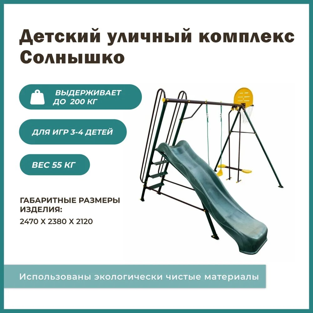Игровой уличный комплект OLSA Солнышко-5 c651, 247х238х212 cм горка, качели, баскетбольное кольцо интересное: