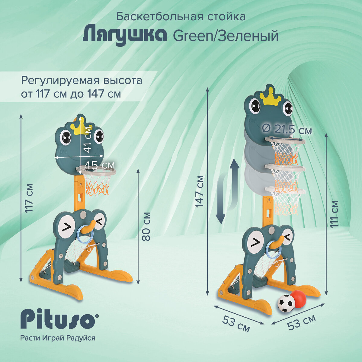 Баскетбольное кольцо детское Pituso Лягушка, стойка с кольцебросом и футбольными воротами, зеленый интересное: