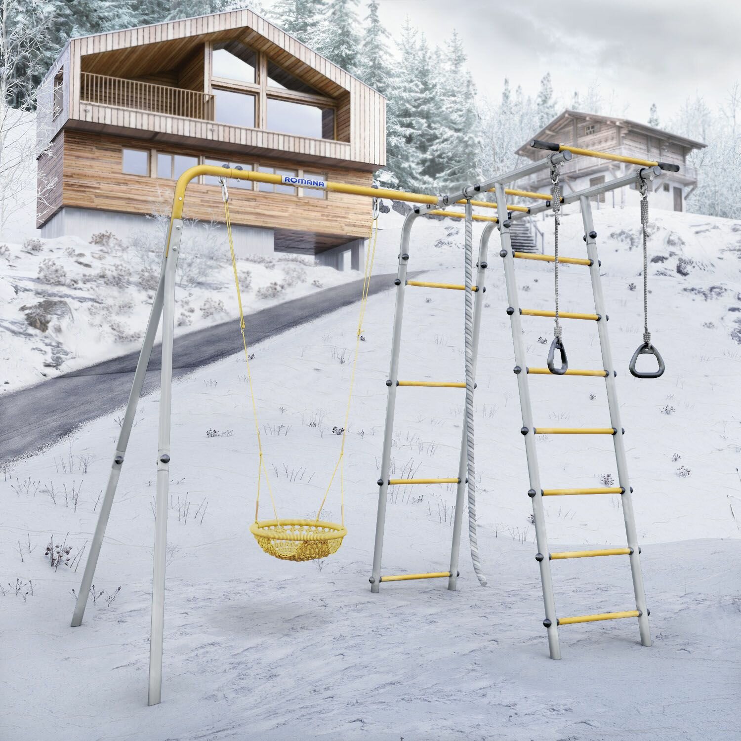 Спортивный комплекс для улицы ROMANA Лесная Поляна, качели пластиковые