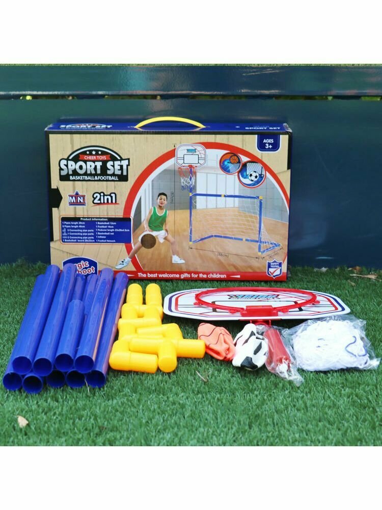 Купить Детский спортивный набор 2-в-1 переносные футбольные ворота + баскетбольное кольцо для мальчиков и девочек