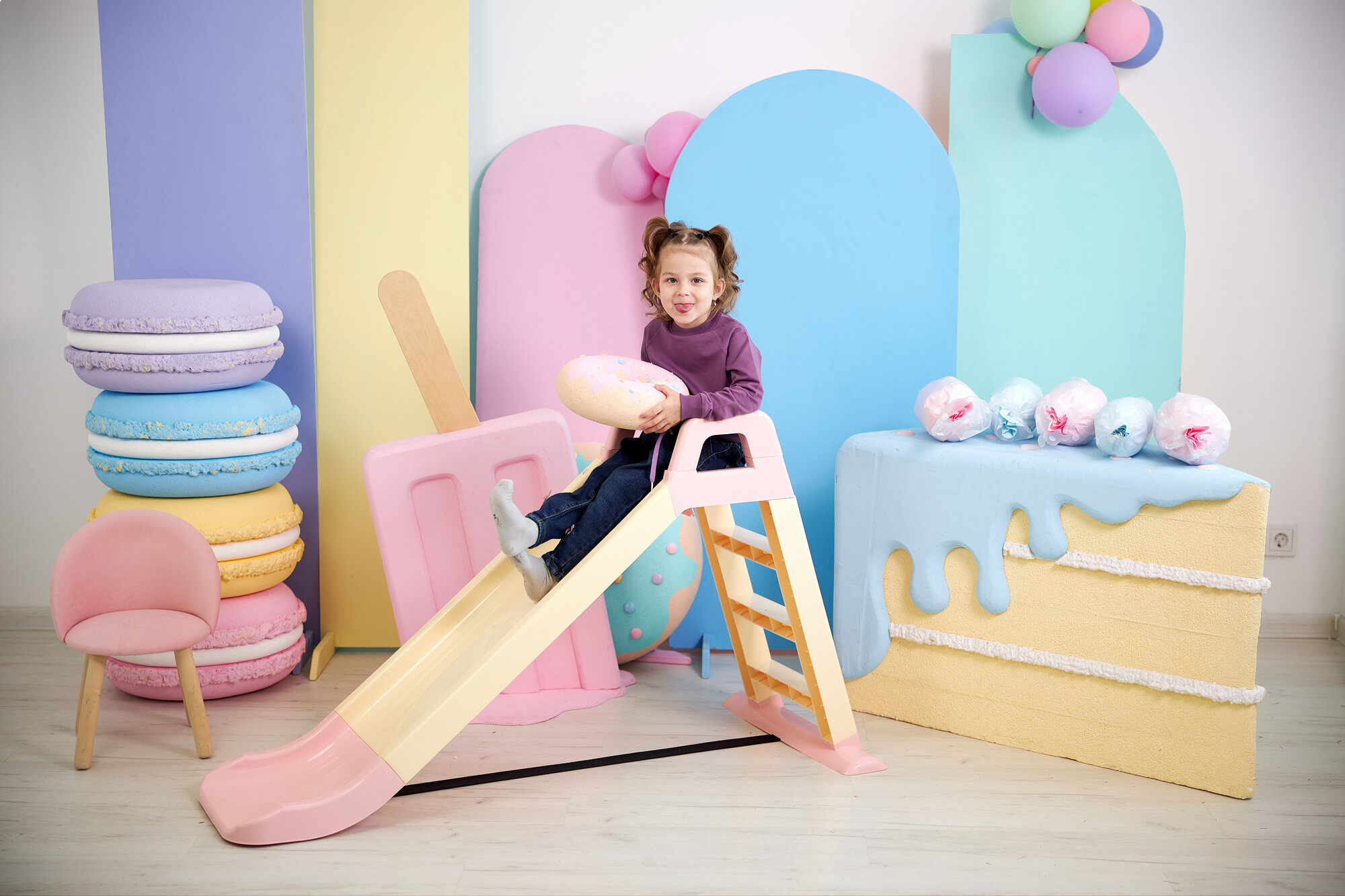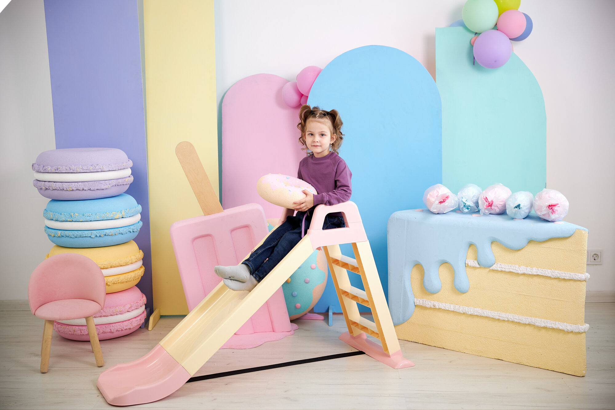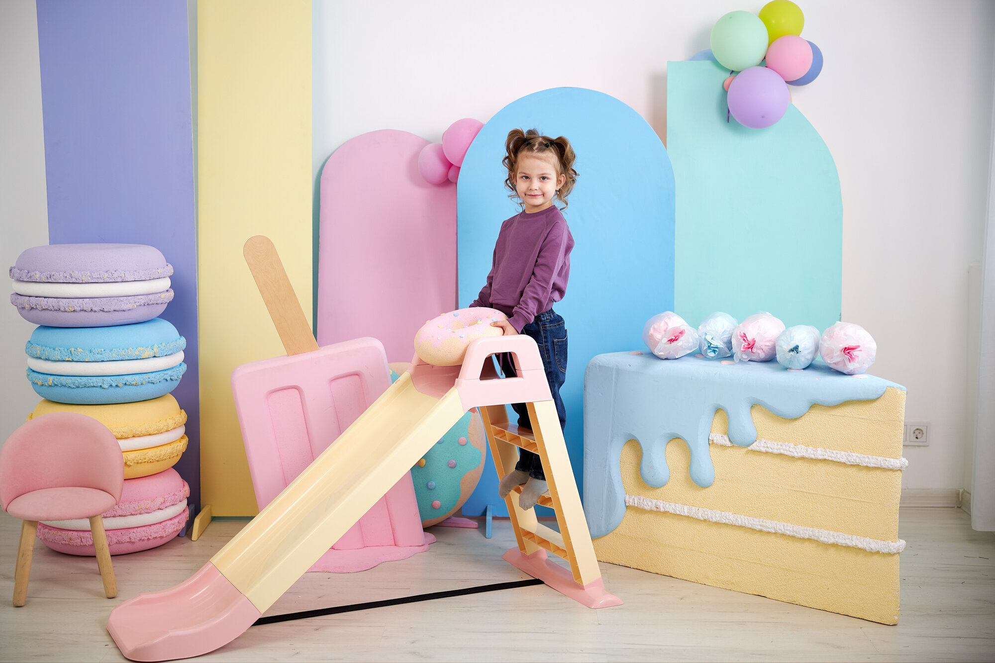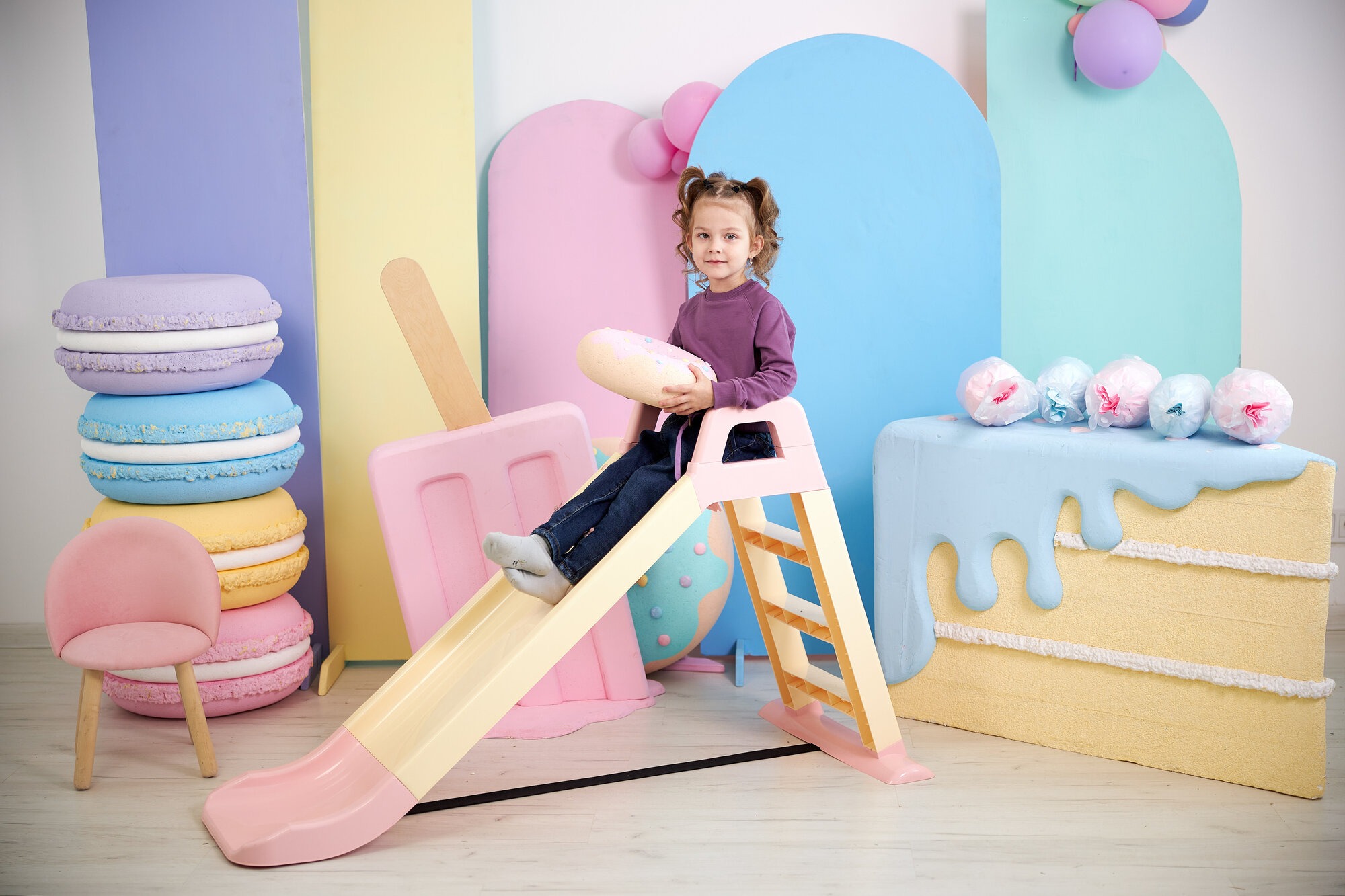 Горка детская OKIKID розовая 78х135х60 см, от 1 года, до 30 кг интересное: