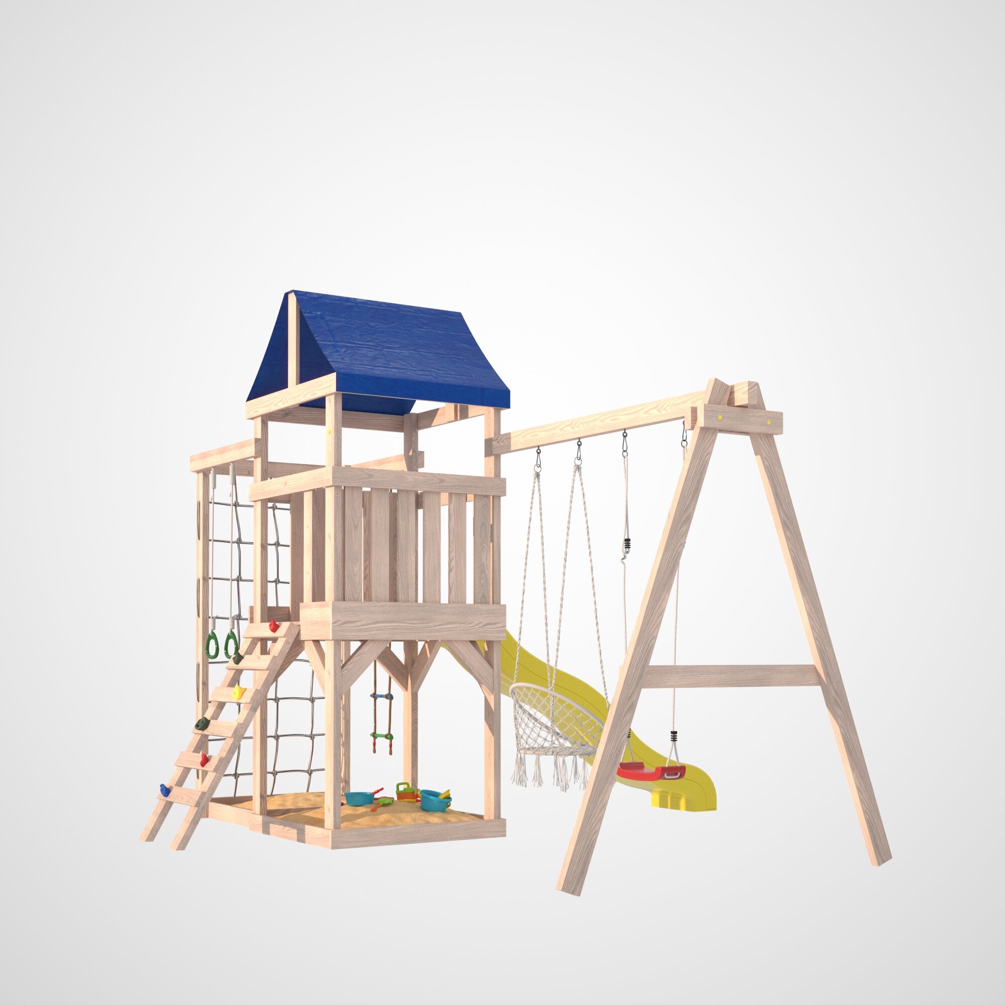 National Tree Company Детская площадка неокрашенная Fun Land с сеткой стенкой и плетенным креслом для дачи и улицы интересное: