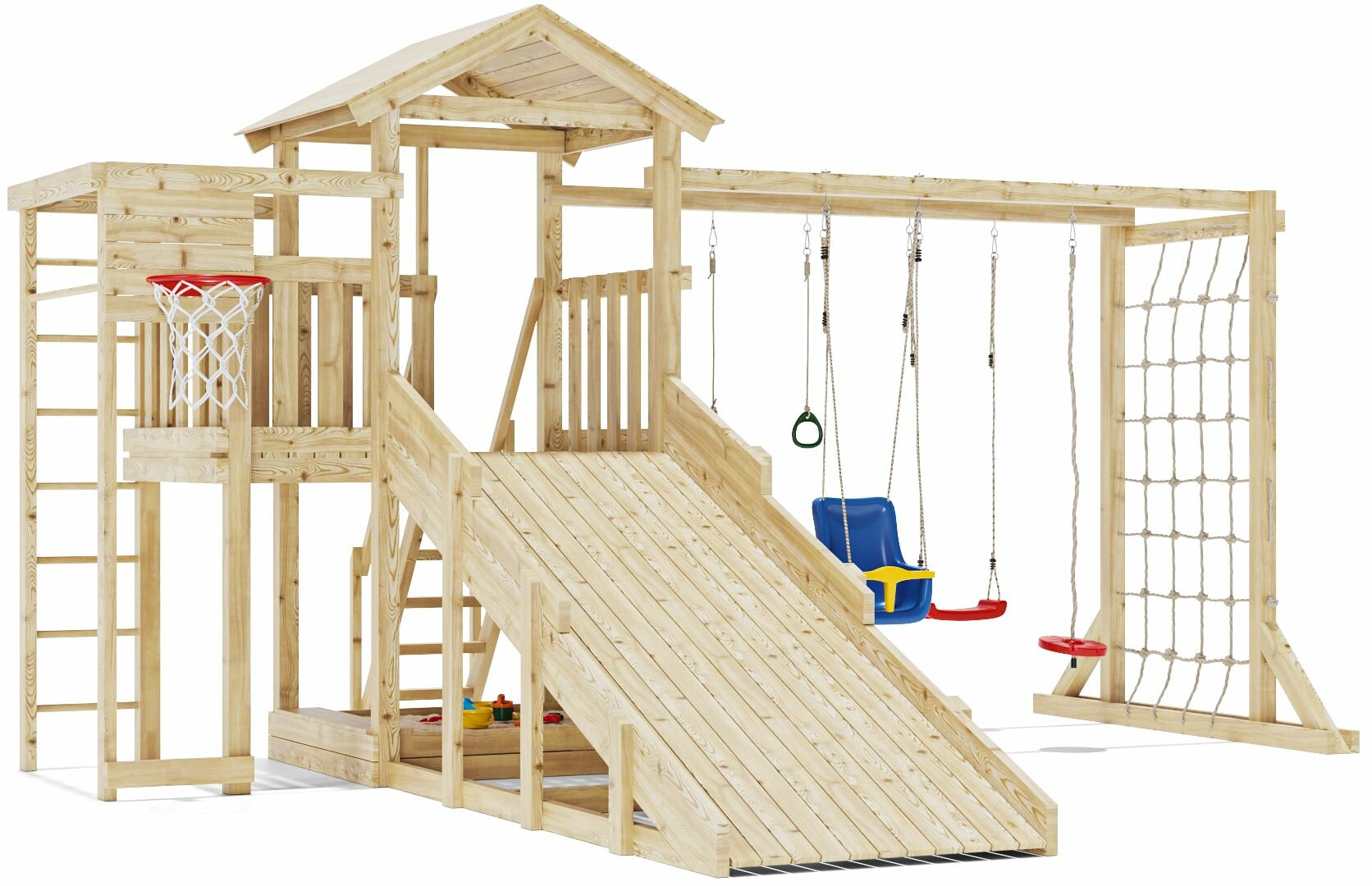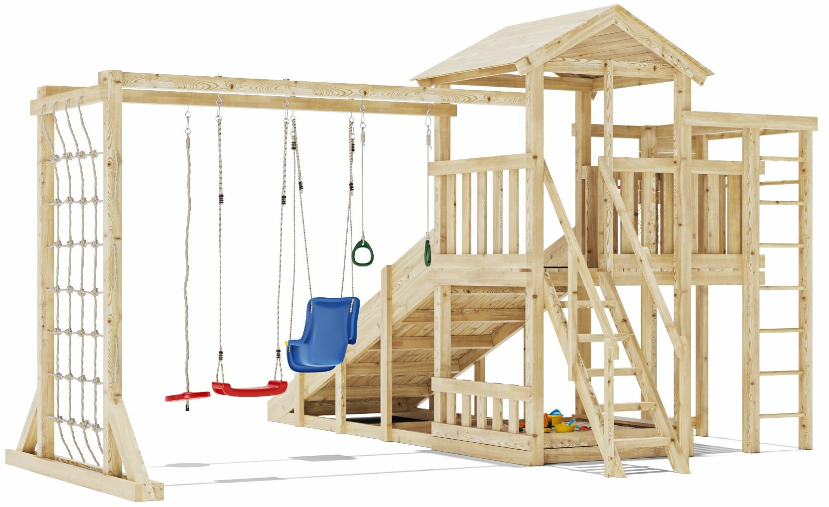 Детская площадка легенда леса всесезонная 2 Золотой Тик-Орех для дачи / Зимняя горка для улицы