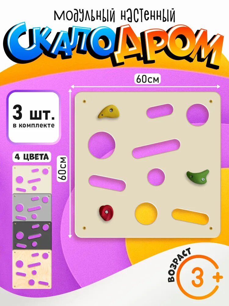 Домашний скалодром Хватамба, 3 панели 60x60 см, слоновая кость интересное: