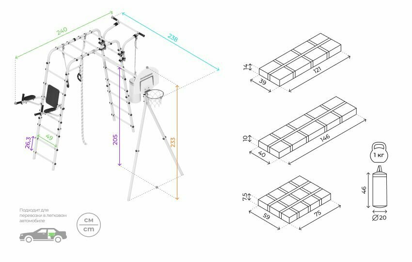 Спортивно-игровой комплекс ROMANA Fitness 103.20.05-01 Фитнесс серый/желтый + Качели цепные интересное: