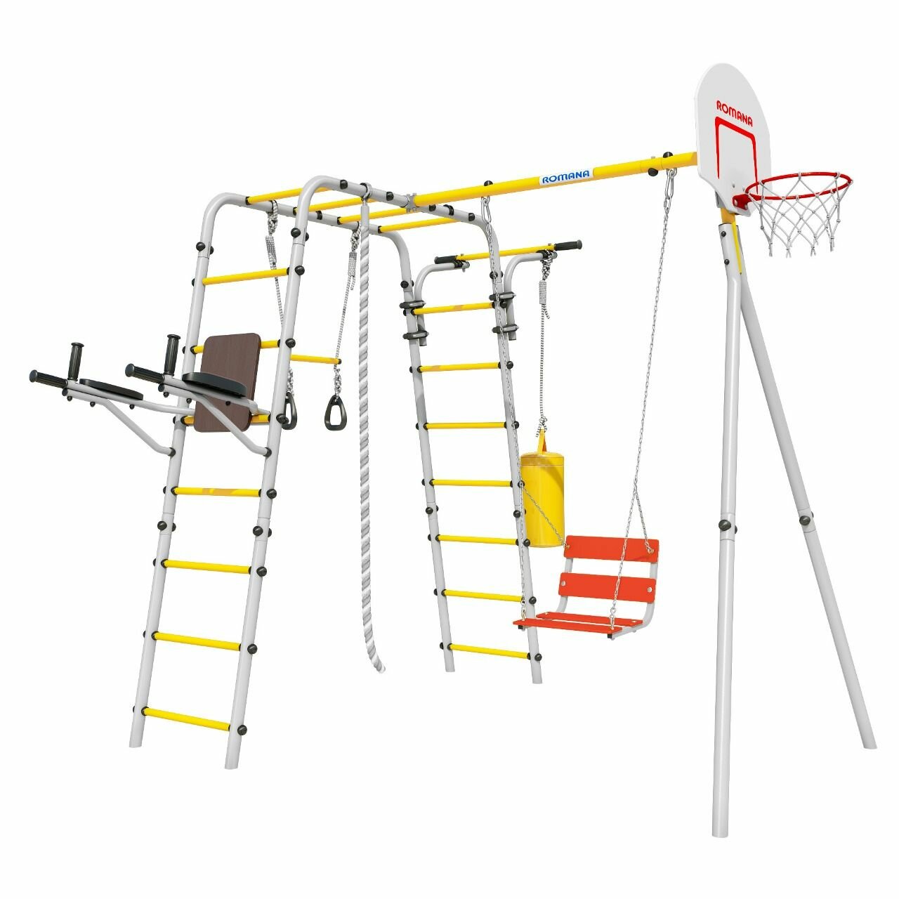 Купить Спортивно-игровой комплекс ROMANA Fitness 103.20.05-01 Фитнесс серый/желтый + Качели цепные