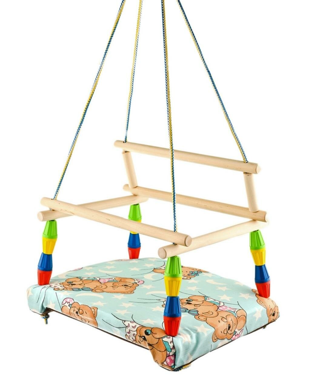 Качели деревянные Марич, подвесные, с ограничивающим бортиком, бежево-голубые интересное: