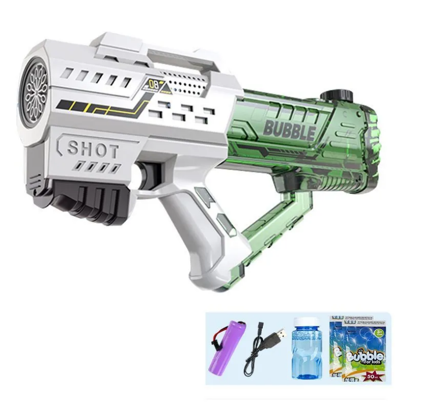 Автоматическая базука-пистолет-генератор мыльных пузырей, бело-зелёный интересное: