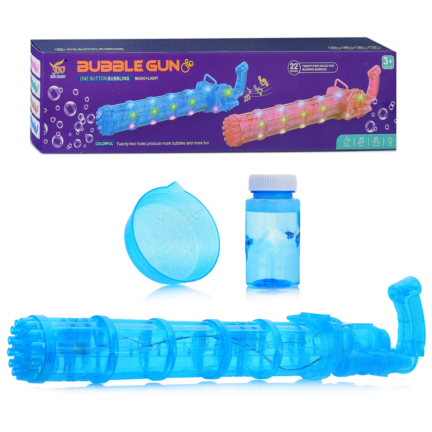 Купить Пистолет 103A для мыльных пузырей (22 выстрела со звук. и свет. эффектом) в коробке