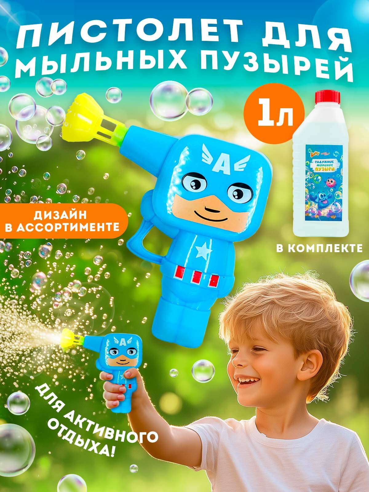 Мыльные пузыри 1000 мл. набор жидкость Baffy + пистолет "Герои", раствор, концентрат. интересное: