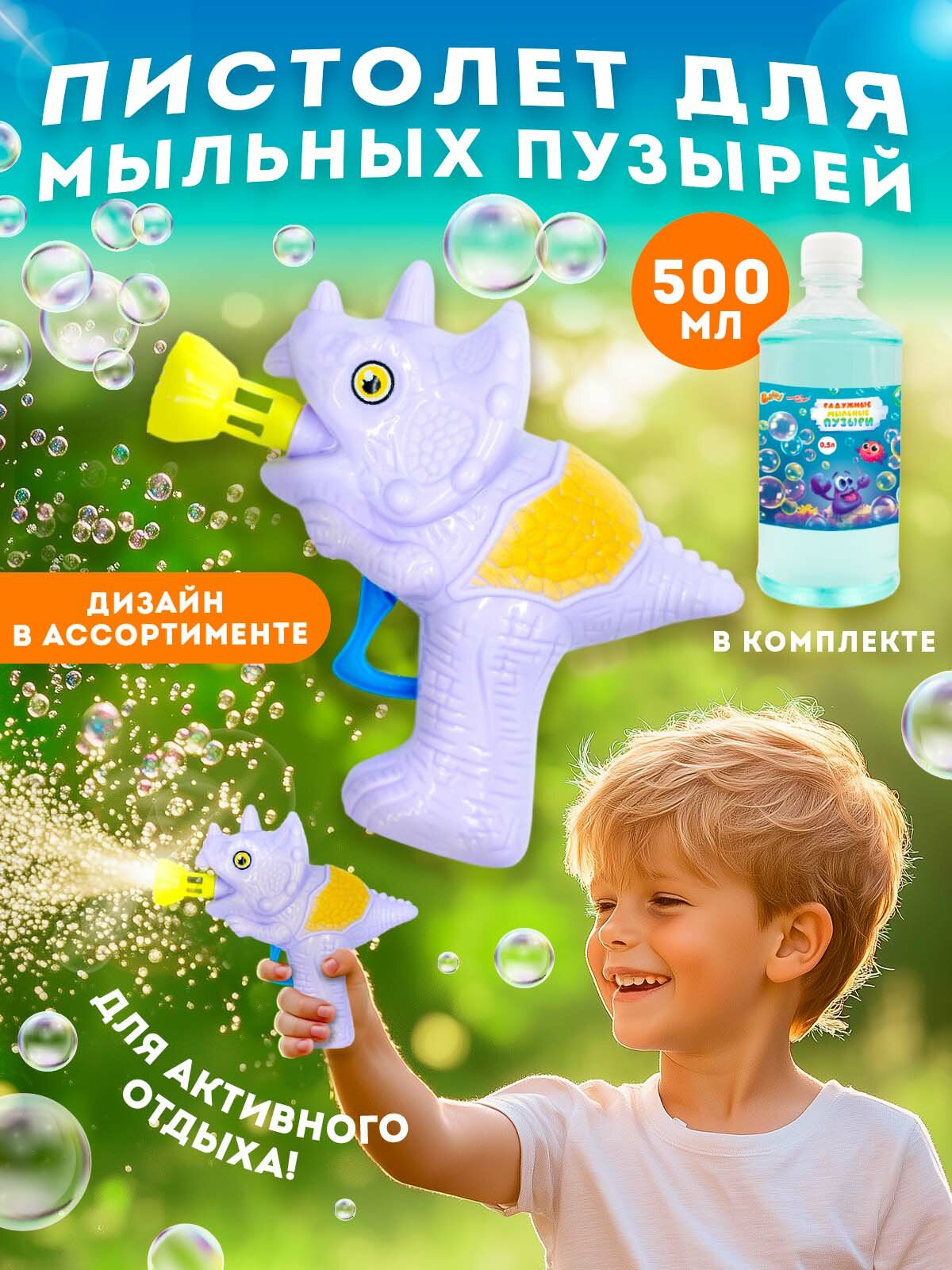 Мыльные пузыри 500 мл. набор жидкость Baffy + пистолет "Жираф", раствор для мыльных пузырей.