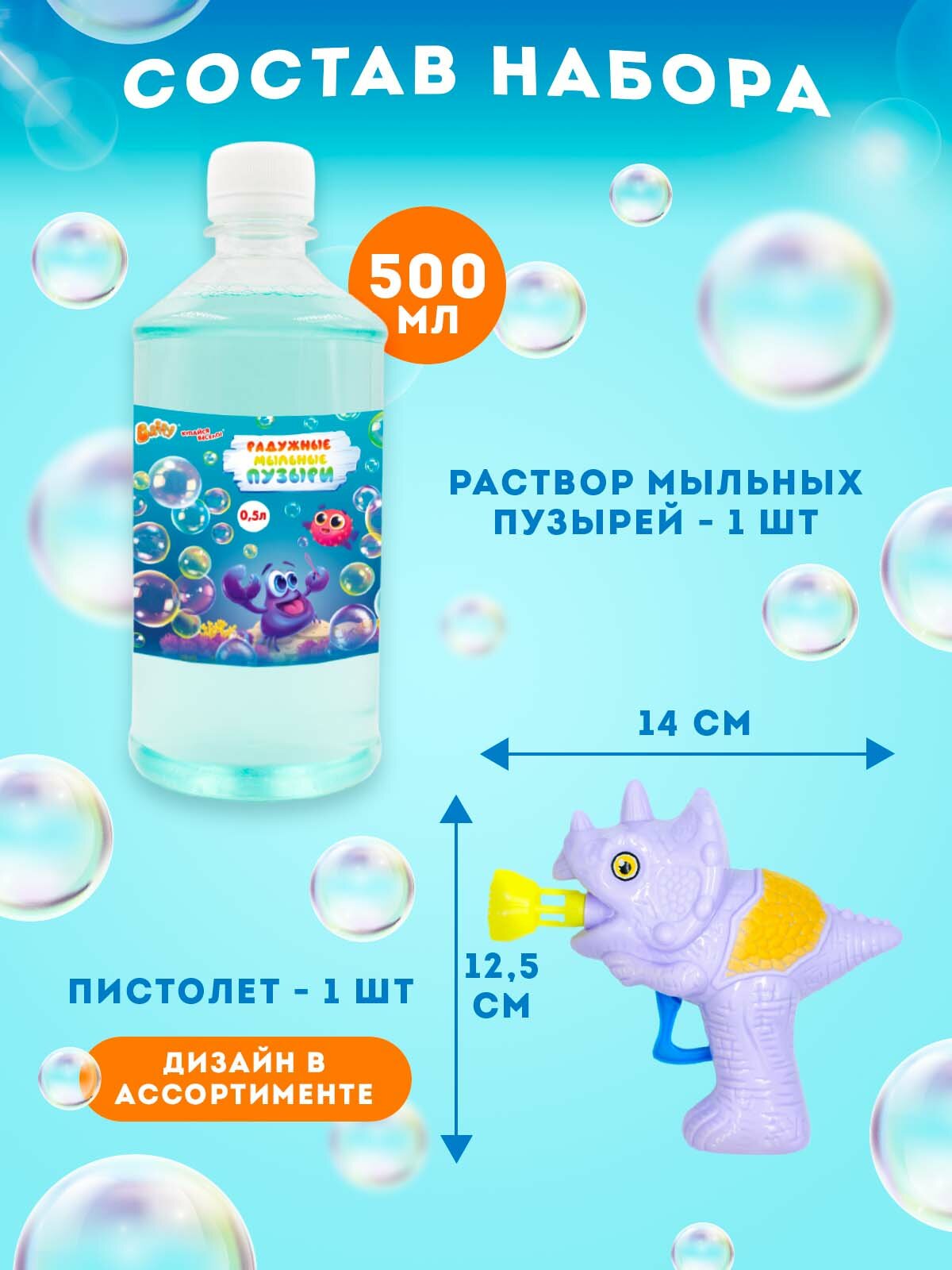 Мыльные пузыри 500 мл. набор жидкость Baffy + пистолет" Морской конек ", раствор, концентрат.