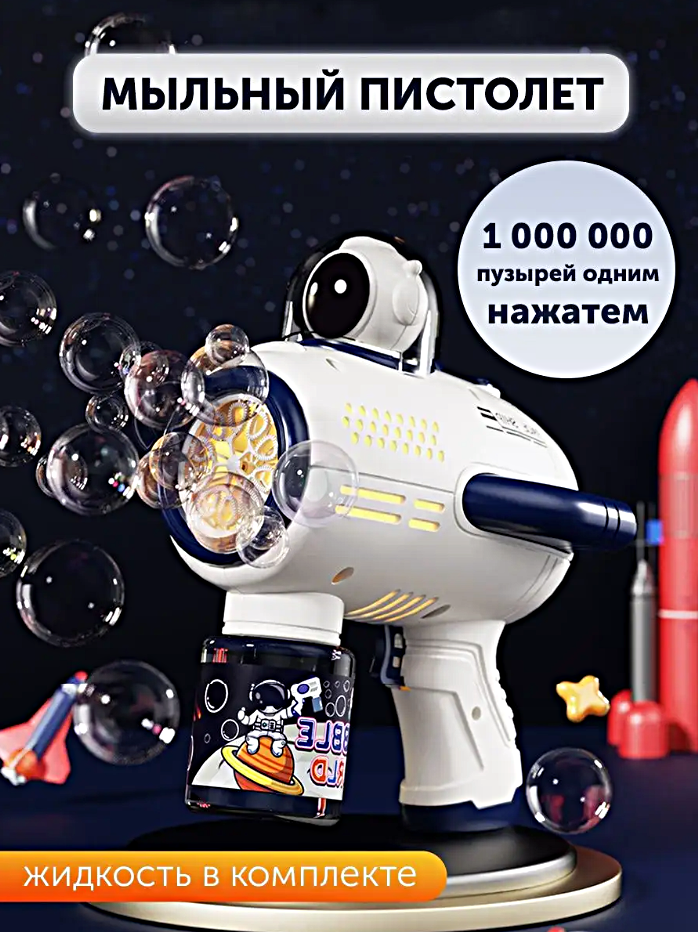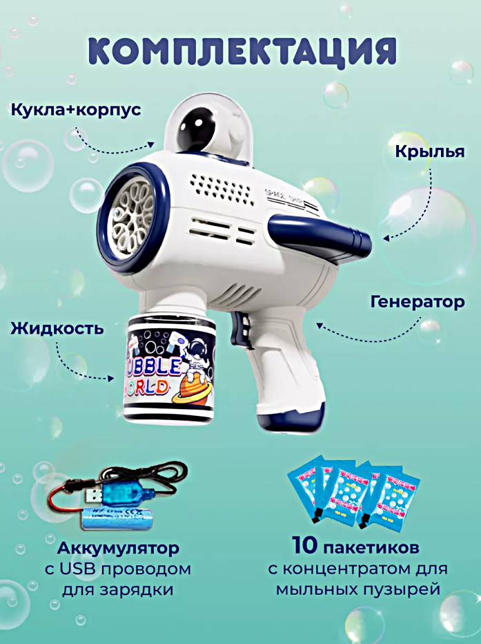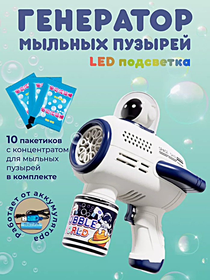 Генератор мыльных пузырей SPACE BUBBLE GUN, Мыльный пистолет автоматический с подсветкой, Синий интересное:
