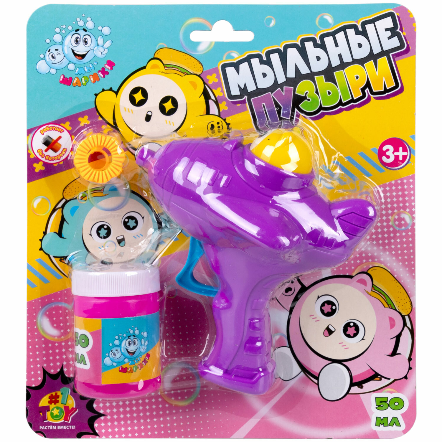 Купить 1TOY Мы-шарики! пистолет мех. с мыл. пуз, Мультяшка на самолете, 50 мл, блистер, сиреневый