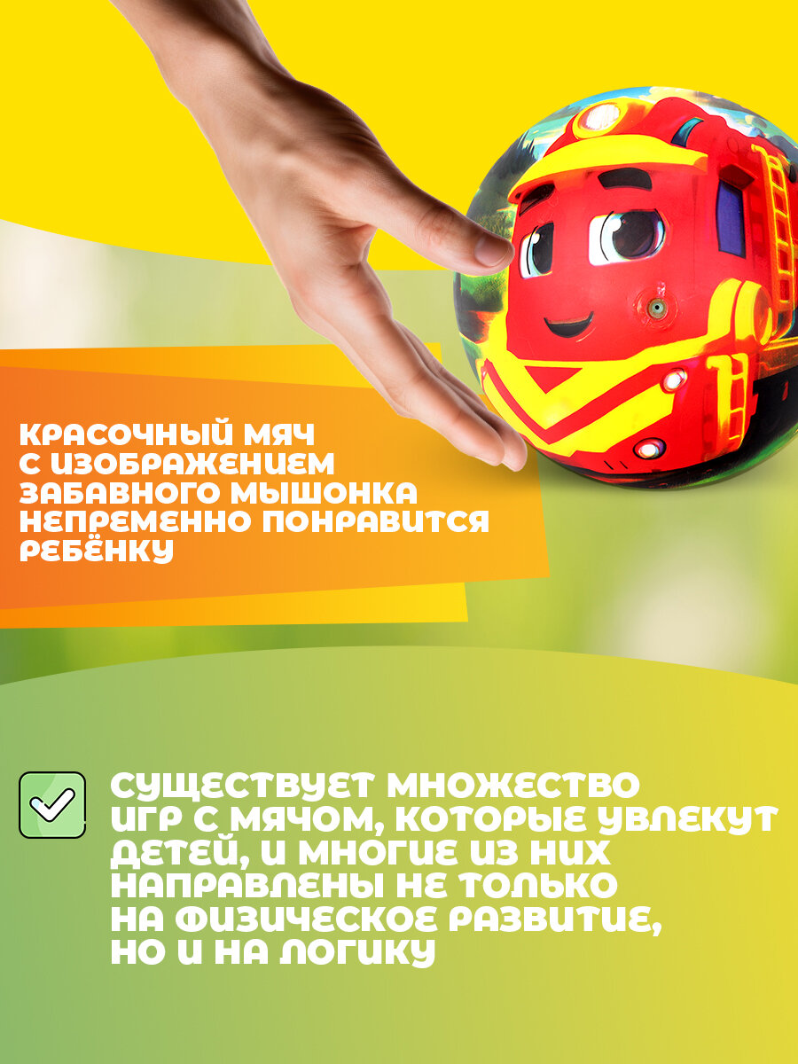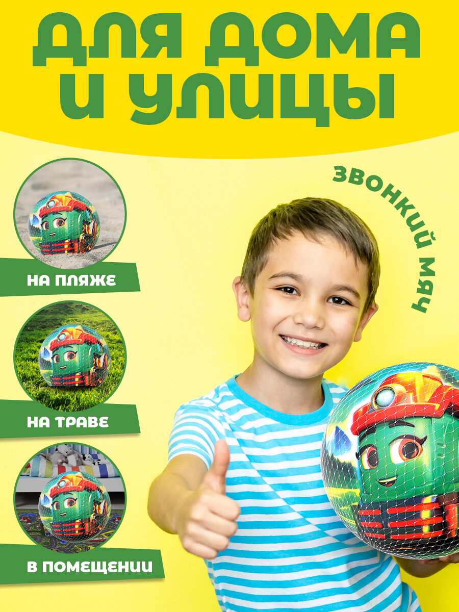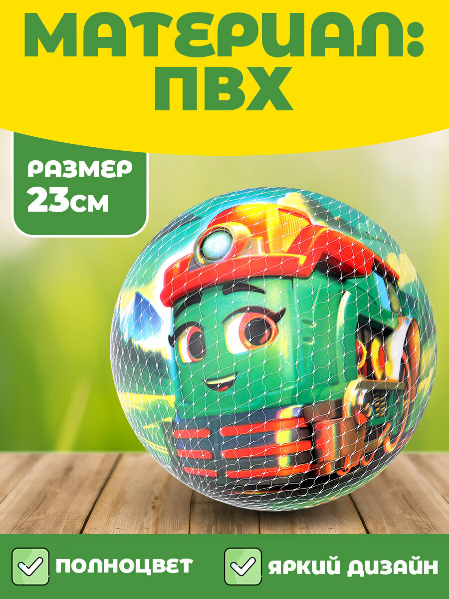 Мяч детский резиновый в сетке 23 см Паровозики, Играем вместе интересное: