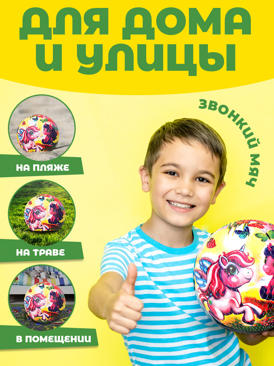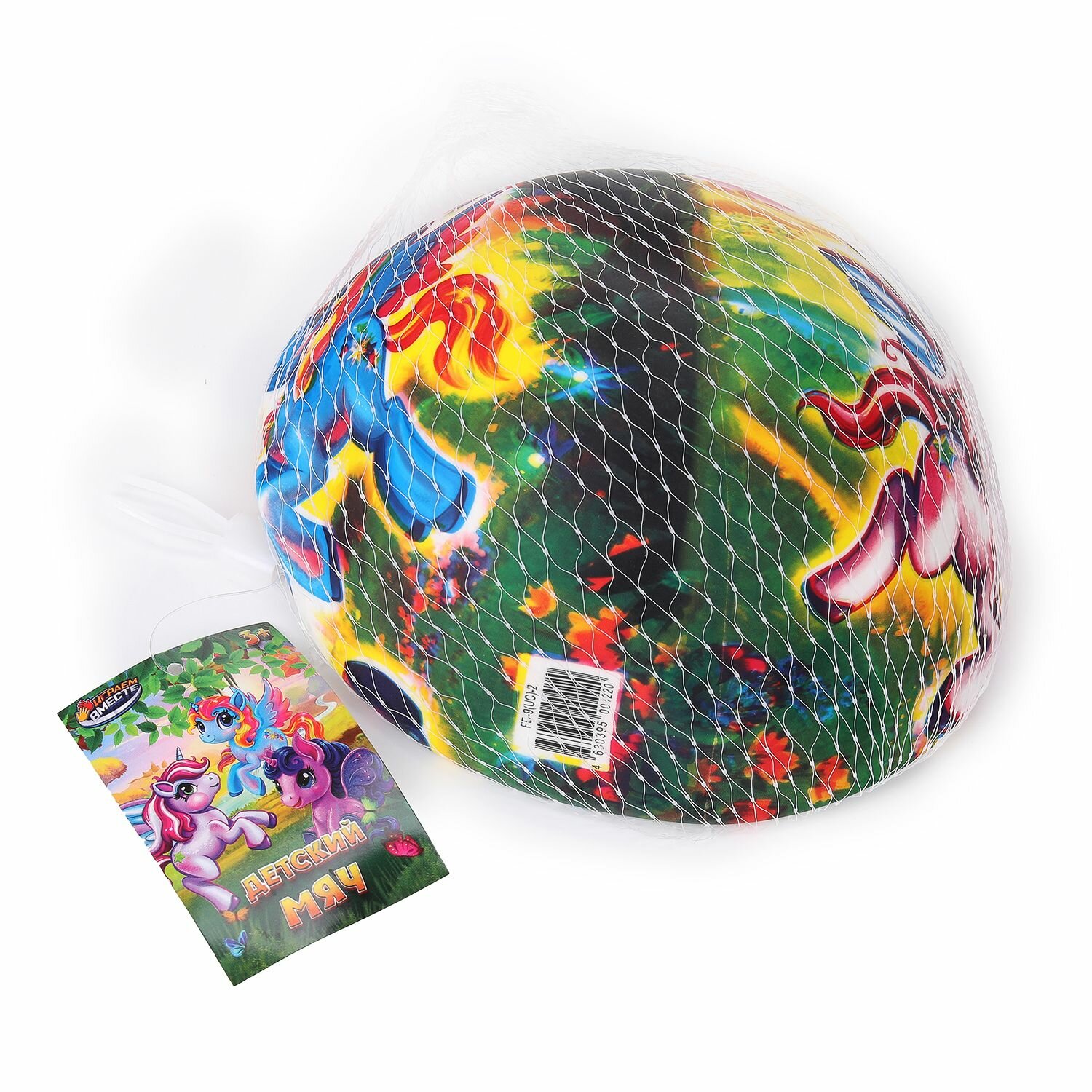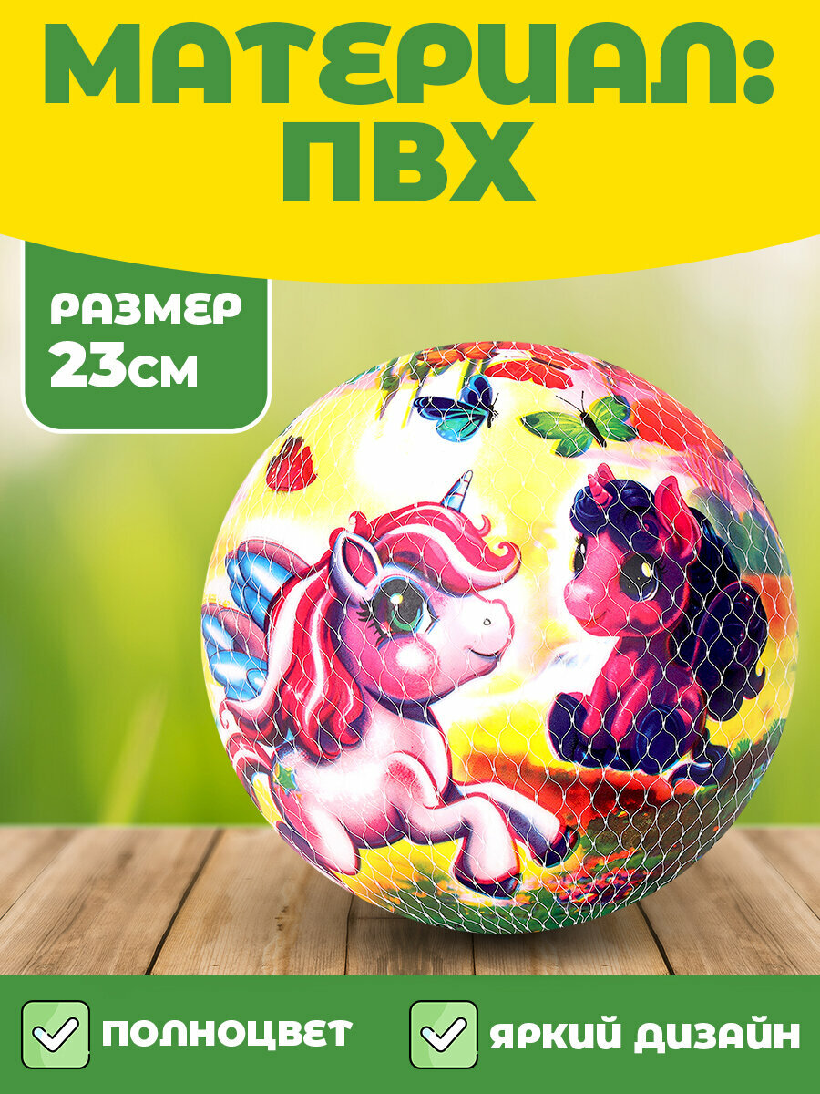 Мяч детский резиновый в сетке 23 см Единорожки, Играем вместе интересное: