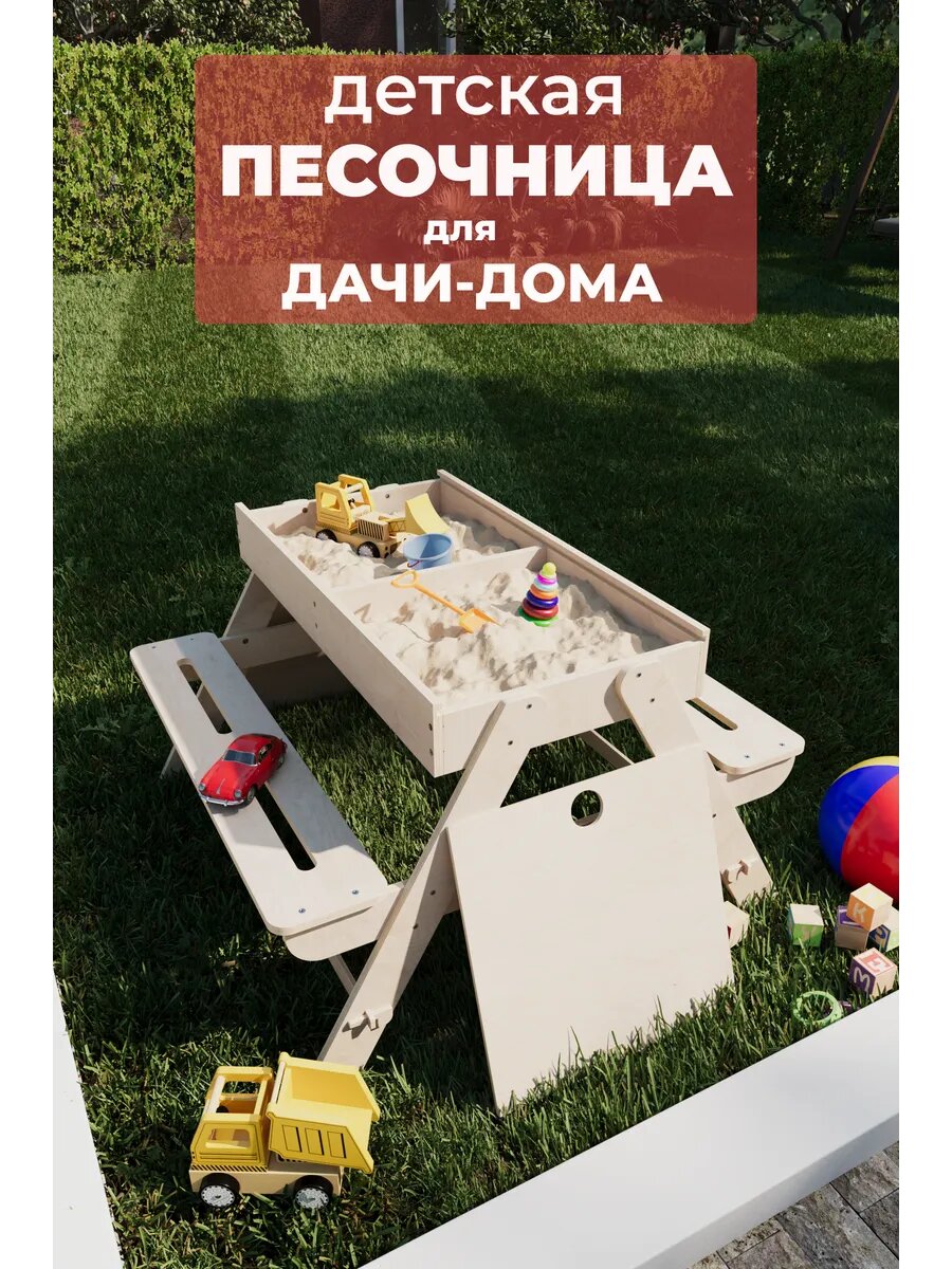 Песочница детская на улицу с крышкой-лавочкой деревянная интересное: