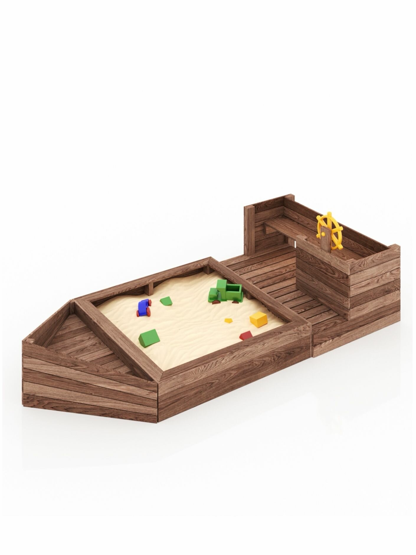Песочница Моя Горка "Флотилия-6", деревянный кораблик, штурвал, 330х150х92 см интересное: