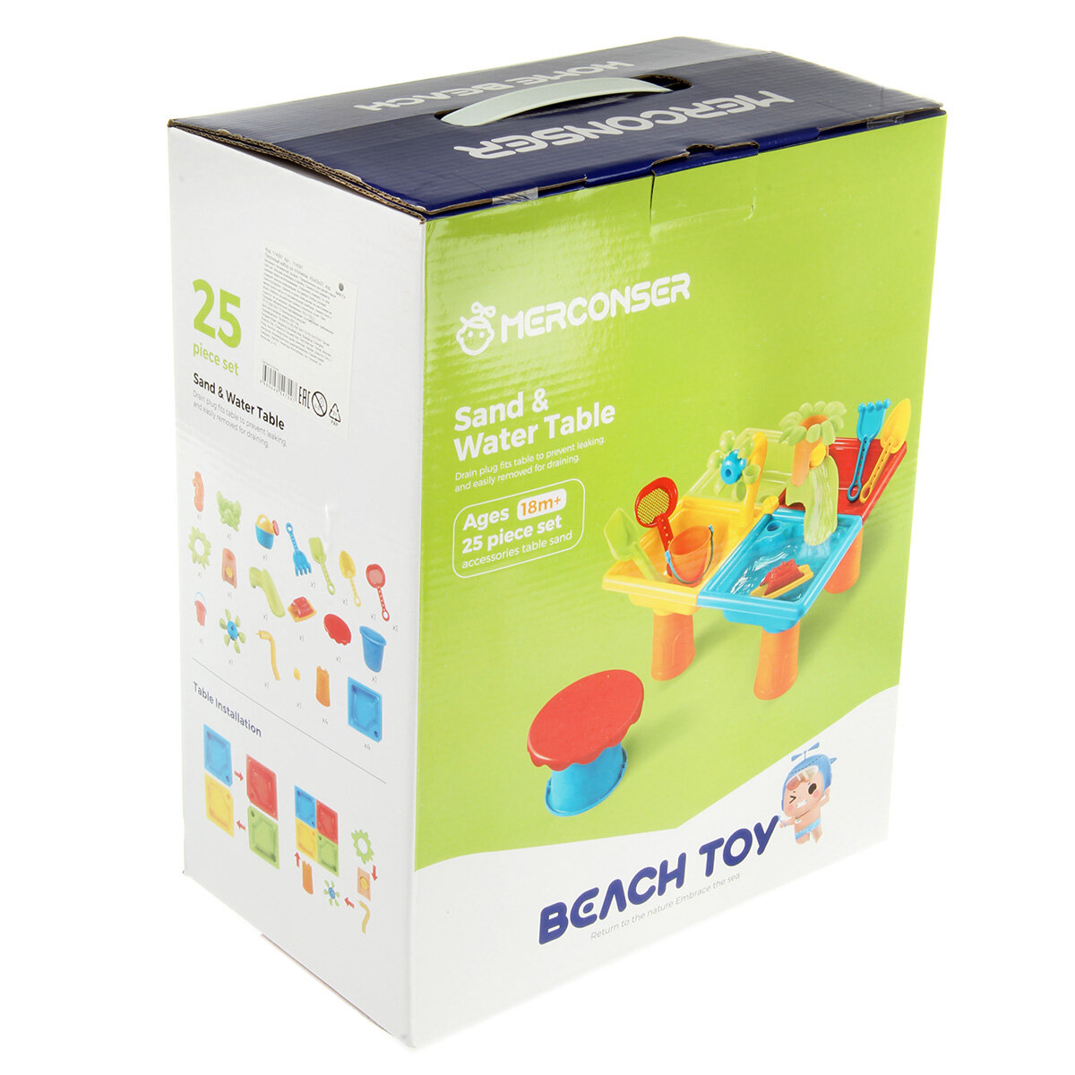 Купить Детский стол песочница, 25 предметов, Veld Co / Песочный набор, формочки для песка / Игра с водой и песком
