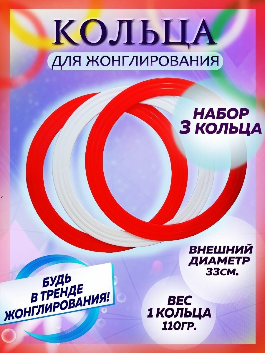 Цирковые кольца для жонглирования Я ЖОНГЛЁР, набор 3 шт - белое, красное, зеленое.