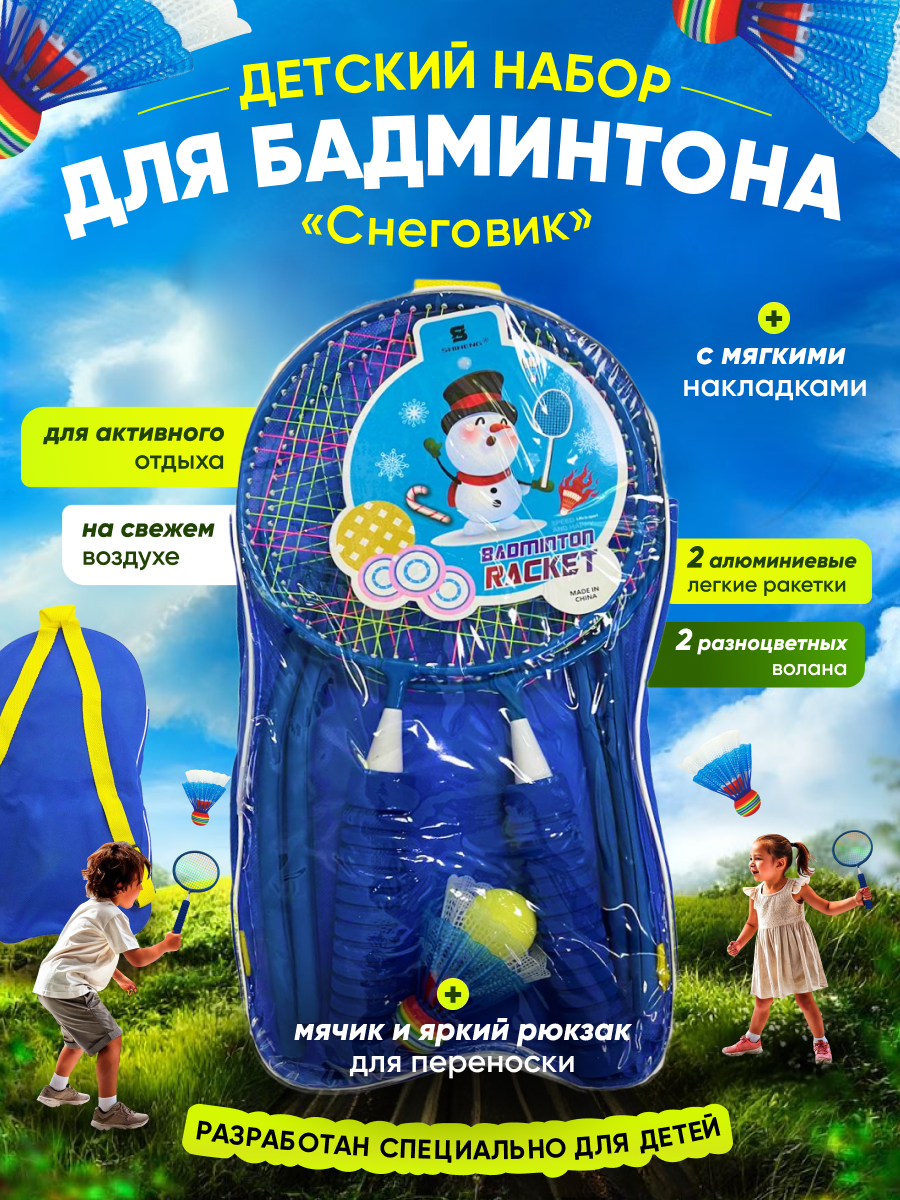 Детский набор для бадминтона с воланом и мячом "Снеговик" (Blue) интересное: