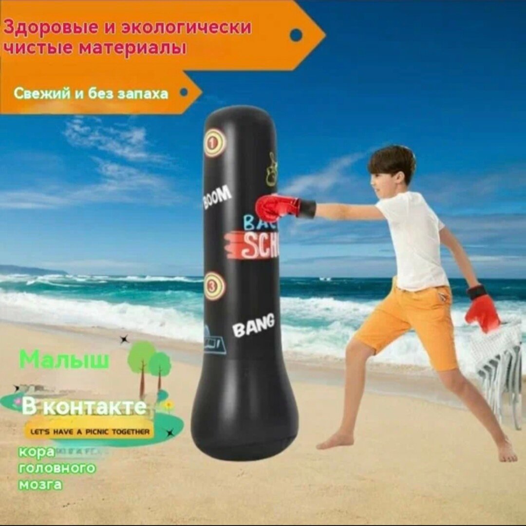 Боксерская надувная груша, для детей, ПВХ, песчаный наполнитель, 160 см, черная интересное: