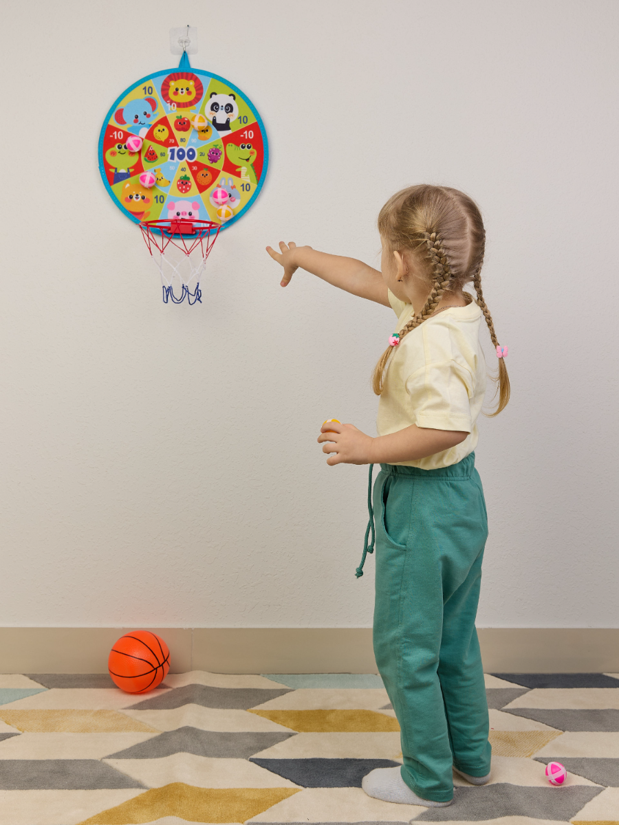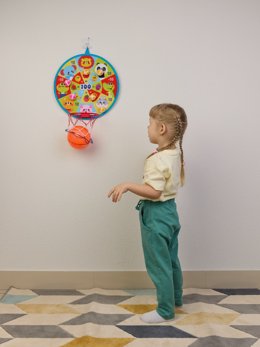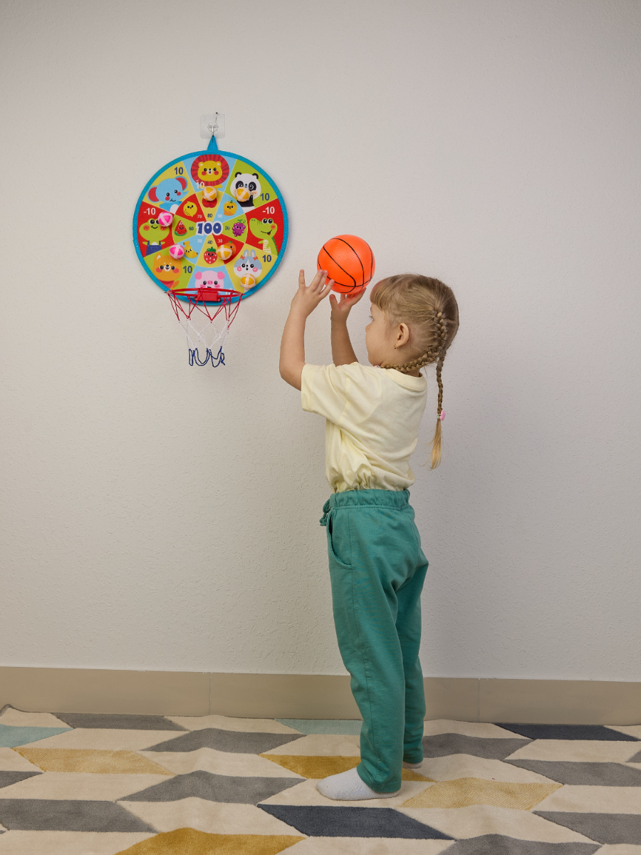 Дартс с липучками шариками 36 см. 2 в 1 с баскетбольным кольцом. 8шариков, мяч, насос в компл. интересное:
