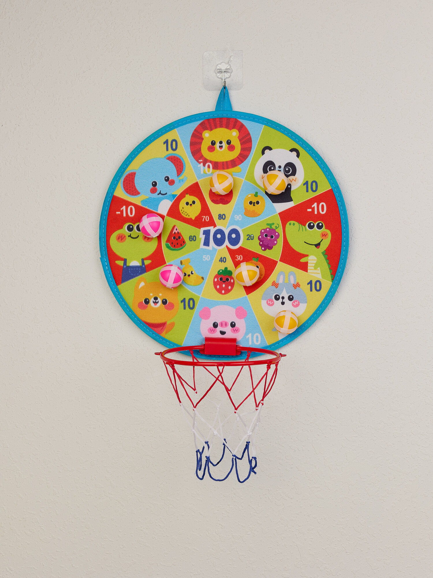 Купить Дартс с липучками шариками 36 см. 2 в 1 с баскетбольным кольцом. 8шариков, мяч, насос в компл.