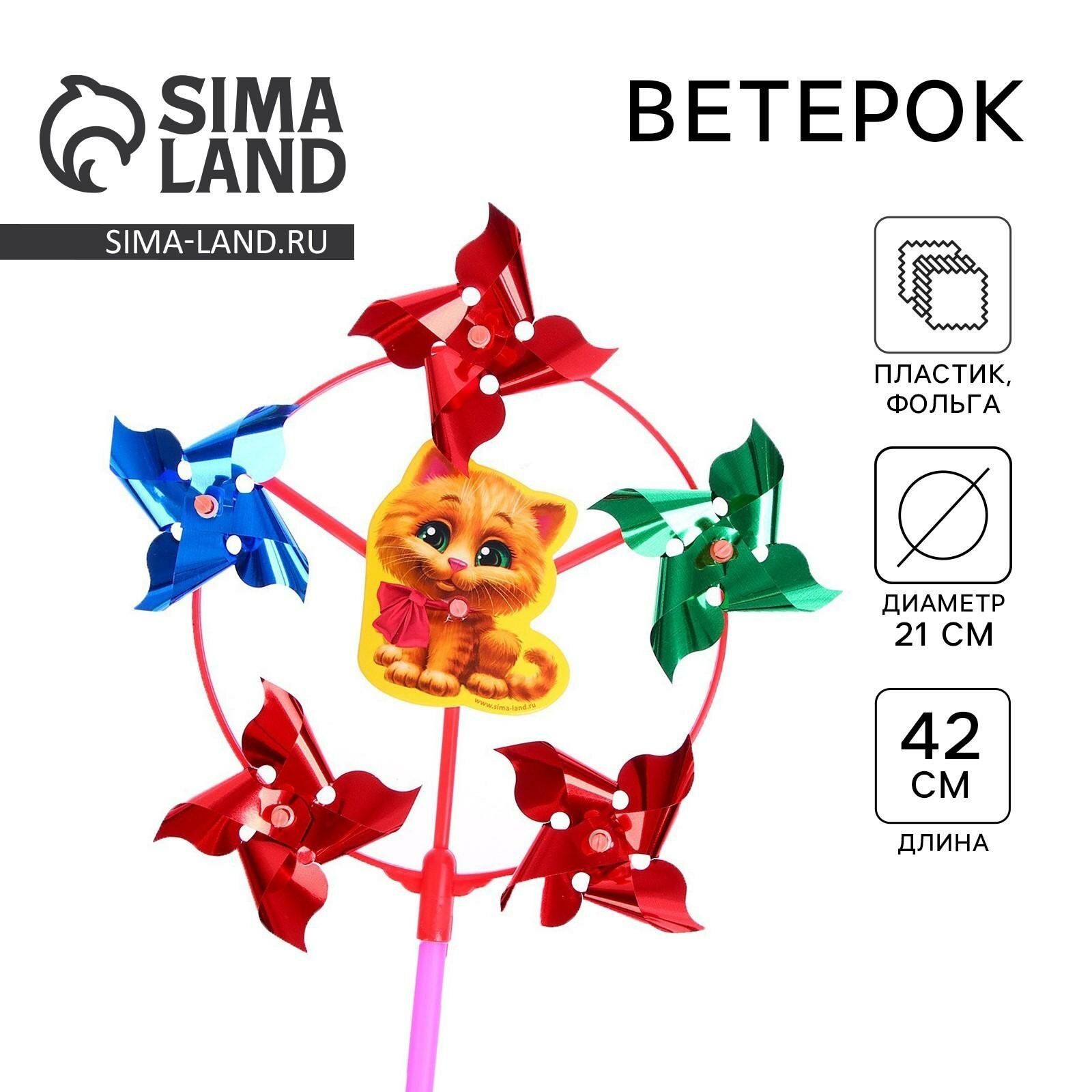 Ветерок детский с фольгой "Котик", h=42 см и d=21 см, пластик, разноцветный интересное: